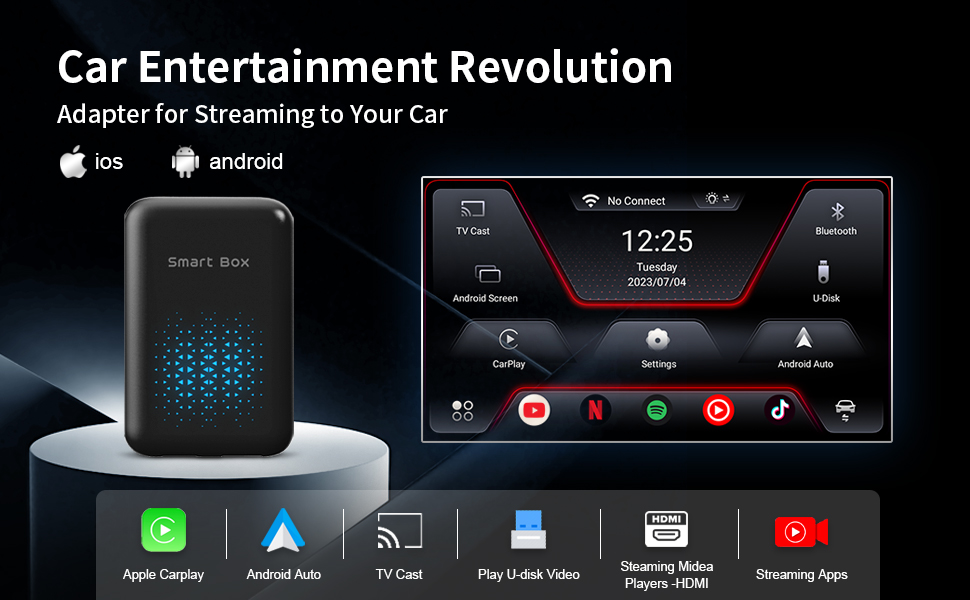 • 【الصندوق السحري】سيقوم صندوق CarPlay السحري هذا بتحويل CarPlay السلكي لسيارتك إلى نظام Android Auto & CarPlay لاسلكي، مزود بميزة CarPlay اللاسلكية المدمجة، وWireless Android Auto، وتطبيقات Android، ووظيفة عرض الشاشة. وهو يدعم مدخل USB واحد وواجهة إخراج HDMI واحدة، مما يتيح راحة التوصيل والتشغيل من خلال اتصال USB/Type-C، مما يلغي الحاجة إلى تفكيك صوت السيارة الأصلي.
