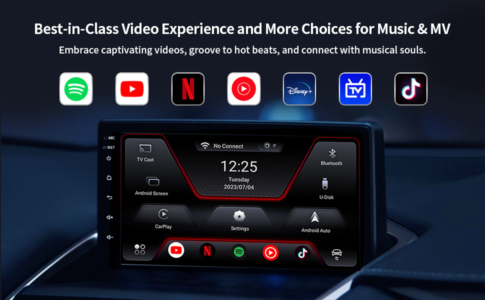 • 【بث الأفلام】تتضمن تطبيقات Android المدمجة Netflix وYouTube وPrime Video وWorld Tv وSpotify. عندما تكون سيارتك متصلة بشبكة لاسلكية أو نقطة اتصال محمولة، يمكنك الاستمتاع بمجموعة واسعة من الأفلام والمسلسلات التلفزيونية والأخبار والموسيقى عبر الإنترنت. بالإضافة إلى ذلك، حتى بدون الاتصال بالإنترنت، لا يزال بإمكانك تشغيل مقاطع الفيديو والموسيقى بمجرد توصيل محرك أقراص فلاش USB.