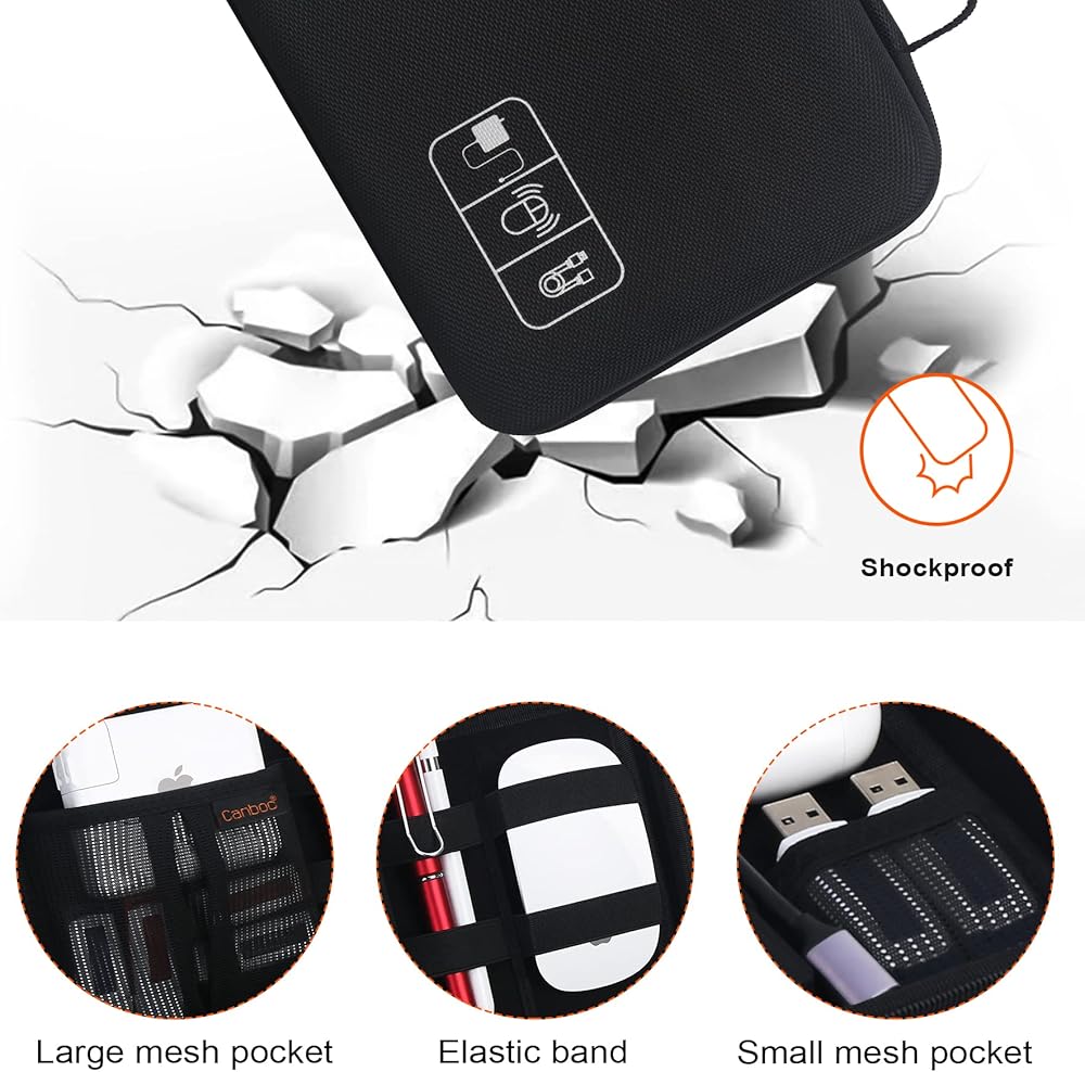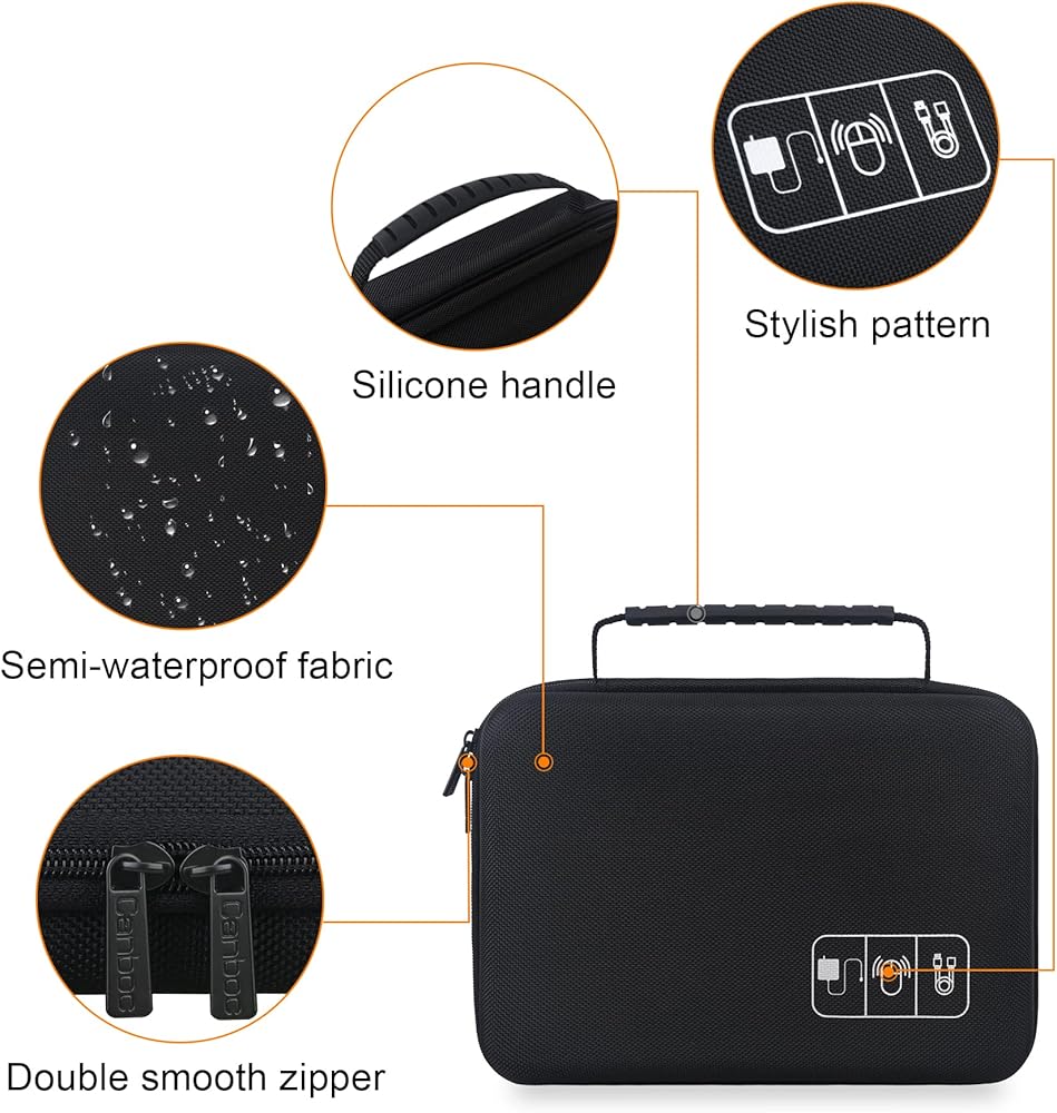【مادة عالية الجودة】 حقيبة التخزين الإلكترونية مصنوعة من القماش ومادة EVA، شبه مقاومة للماء والصدمات، وهي قوية ومتينة ويمكنها حماية جميع العناصر الموجودة بالداخل من الخدوش والغبار والتأثيرات والسقوط العرضي.