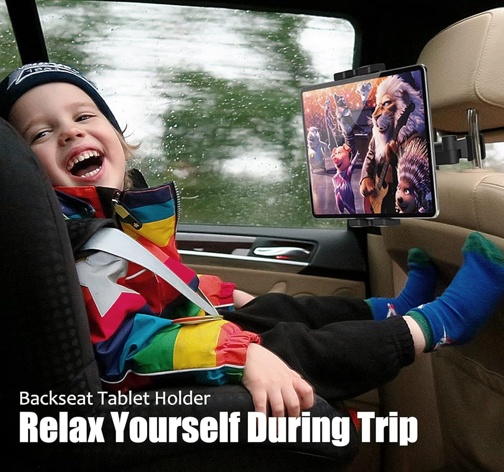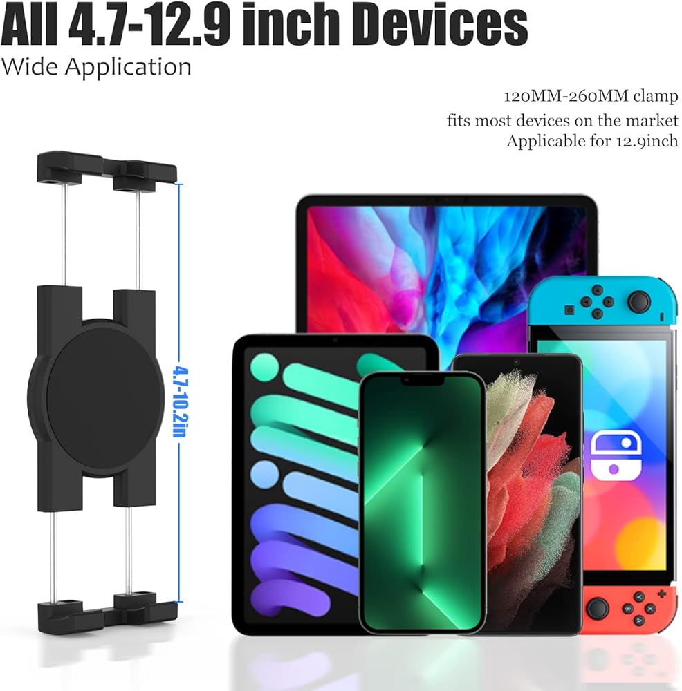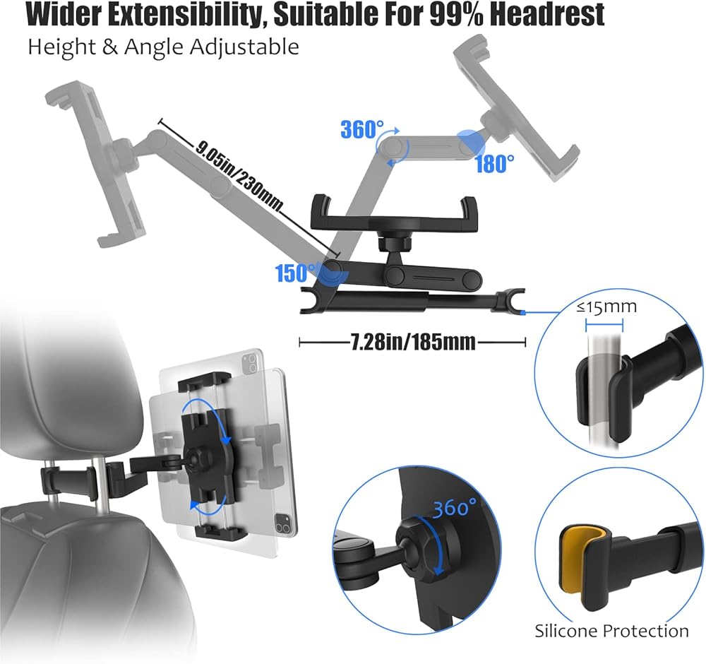 Charchendo car headrest tablet holder compatible with all 4.7-12.9 inch devices, such as iPad Pro 9.7, 10.5, 2020 2021 Newest iPad Pro 11, 12.9, iPad mini 3 4 5 6, iPad Air 2 3, iPad 2 3 4 5 6, iPhone 13 12 Pro XS Max XR X 6 7 8 Plus, Galaxy Tab, Surface Pro, Pixel C, Nexus 7 9, Kindle, Switch and more.