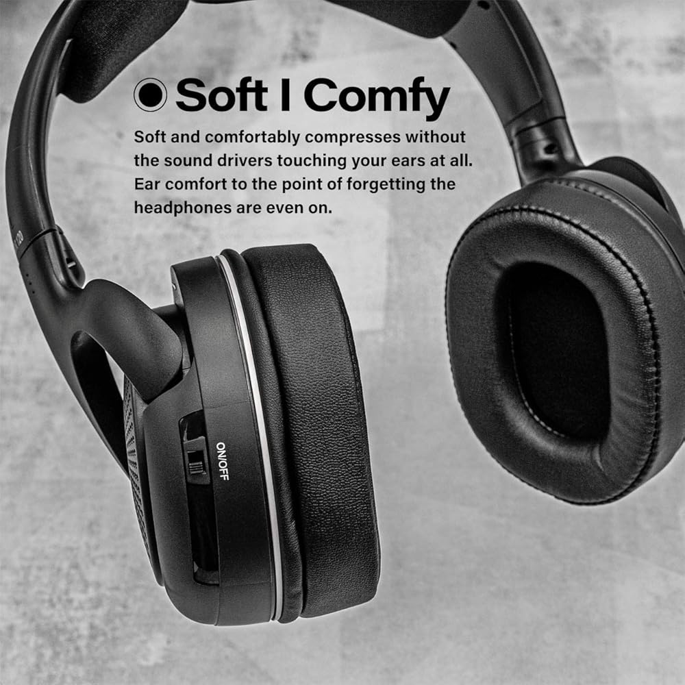 ناعم ومريح: الجلد والإسفنج ناعم ولكنهما يشعران بالمتانة. وسائد أذن ناعمة ومضغوطة بشكل مريح. راحة الأذن لدرجة نسيان أن سماعات الرأس قيد التشغيل.
