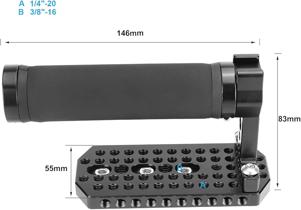 تم تصميم المقبض العلوي للاستخدام مع كاميرات يو إس إيه ميني من بلاك ماجيك ديزاين. يسمح بتكوينات مختلفة مع الكثير من 1/4 "-20 و 3/8" -16 فتحات مترابطة.