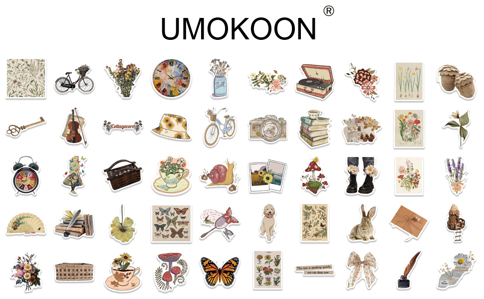 50 قطعة من الملصقات الكلاسيكية من UMOKOON - ملصقات مقاومة للماء للأطفال - ملصق جمالي لطيف من الفينيل لزجاجات المياه والكمبيوتر المحمول والهاتف والمراهقين والفتيات والبالغين