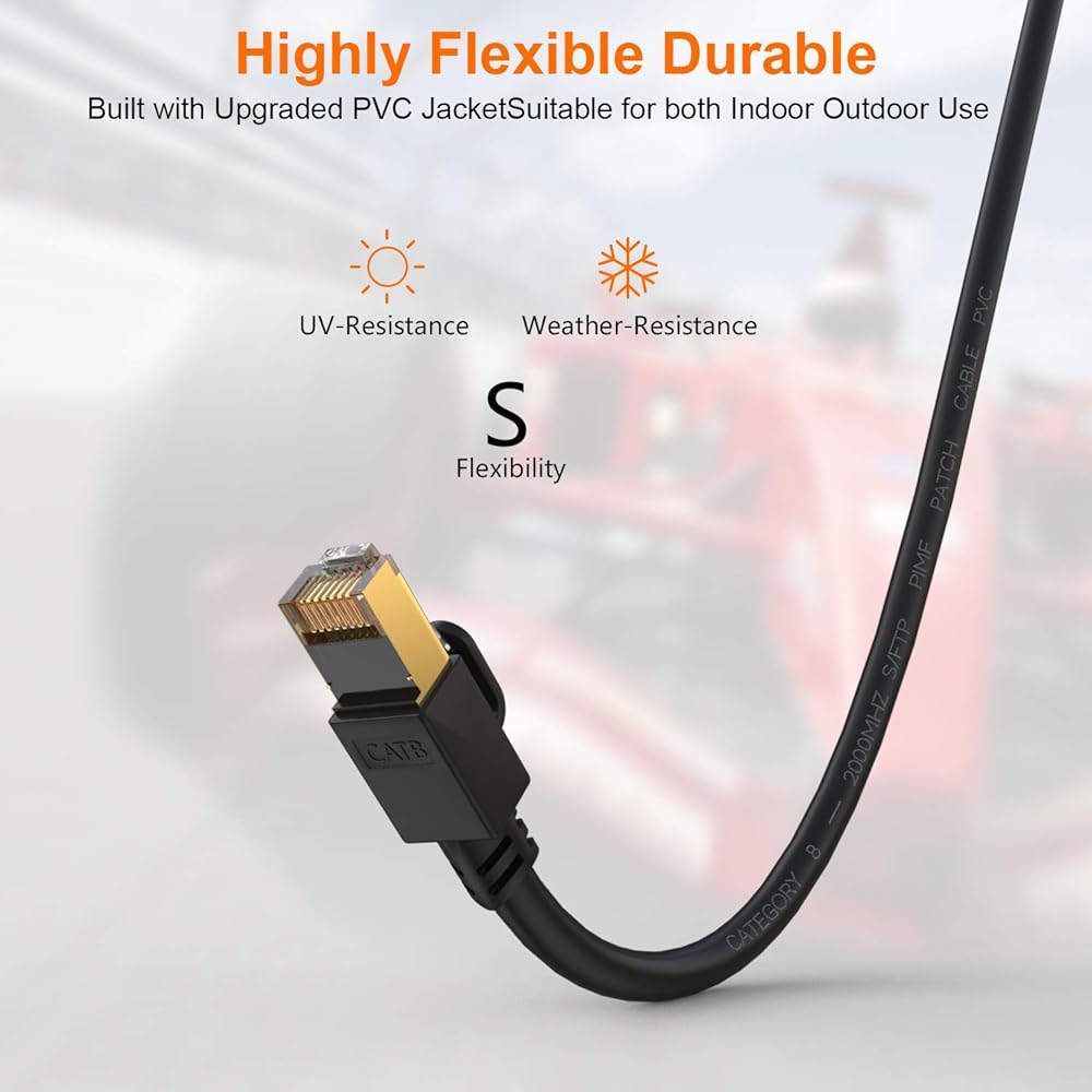 مقاوم للطقس والأشعة فوق البنفسجية: محمي بسترة PVC عالية الجودة مقاومة للأشعة فوق البنفسجية، كابل Cat8 Ethernet ذو التصنيف الخارجي مضاد للشيخوخة. يمكنه تحمل أشعة الشمس المباشرة والطقس البارد والرطب والحار الشديد ومع ذلك لا يزال يعمل بكفاءة. تصميم مميز بجودة رائعة