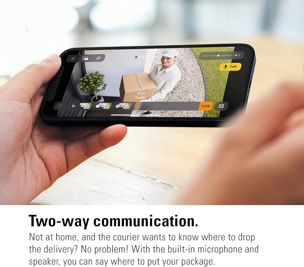 قم بحماية خصوصيتك - تم تصميم Eve Outdoor Cam حصريًا لفيديو Apple HomeKit Secure Video، وهو مصمم من الألف إلى الياء للحفاظ على بياناتك آمنة؛ التشفير الشامل للفيديو المباشر والمسجل