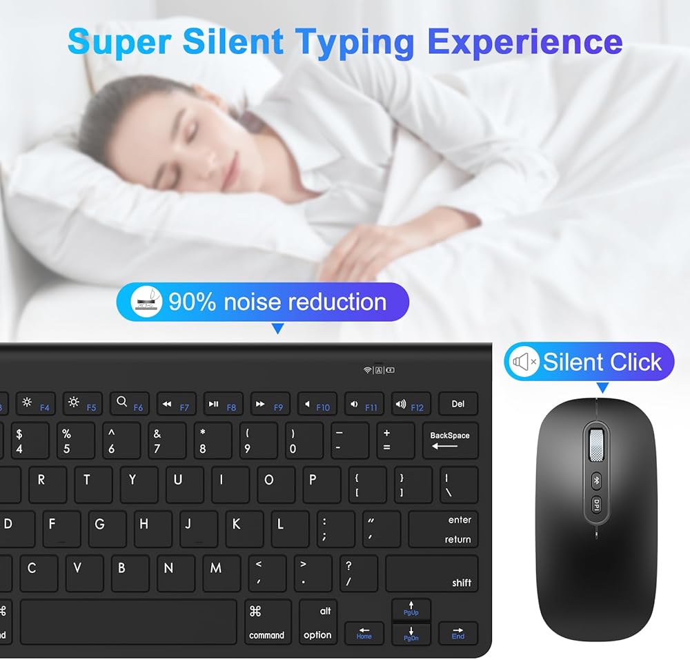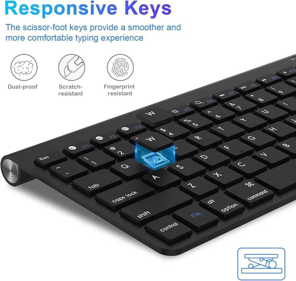 لوحة مفاتيح وماوس بلوتوث لجهاز Mac، مجموعة لوحة مفاتيح وماوس فائقة النحافة من cimetech، لوحة مفاتيح وماوس لاسلكية لأجهزة Mac، MacBook Pro/Air، Mac Mini، الكمبيوتر المحمول والكمبيوتر الشخصي - أسود