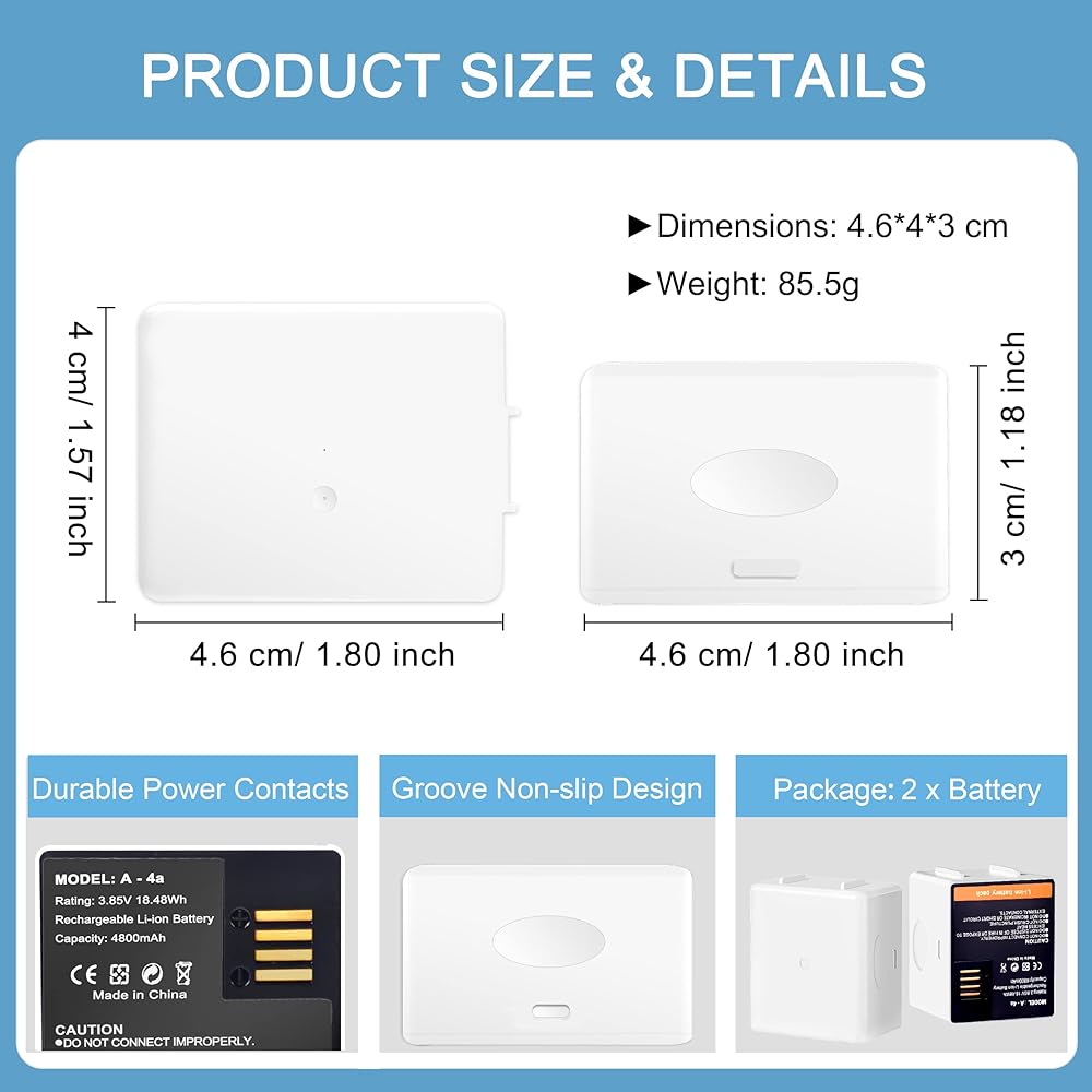 ✅[أداء البطارية] 2 حزمة بطارية قابلة للشحن A-4A نوع: ليثيوم أيون؛ الجهد: 3.85 فولت. السعة: 18.48 وات 4800 مللي أمبير. قدرة عالية للغاية لوقت تشغيل أطول وعمر البطارية.