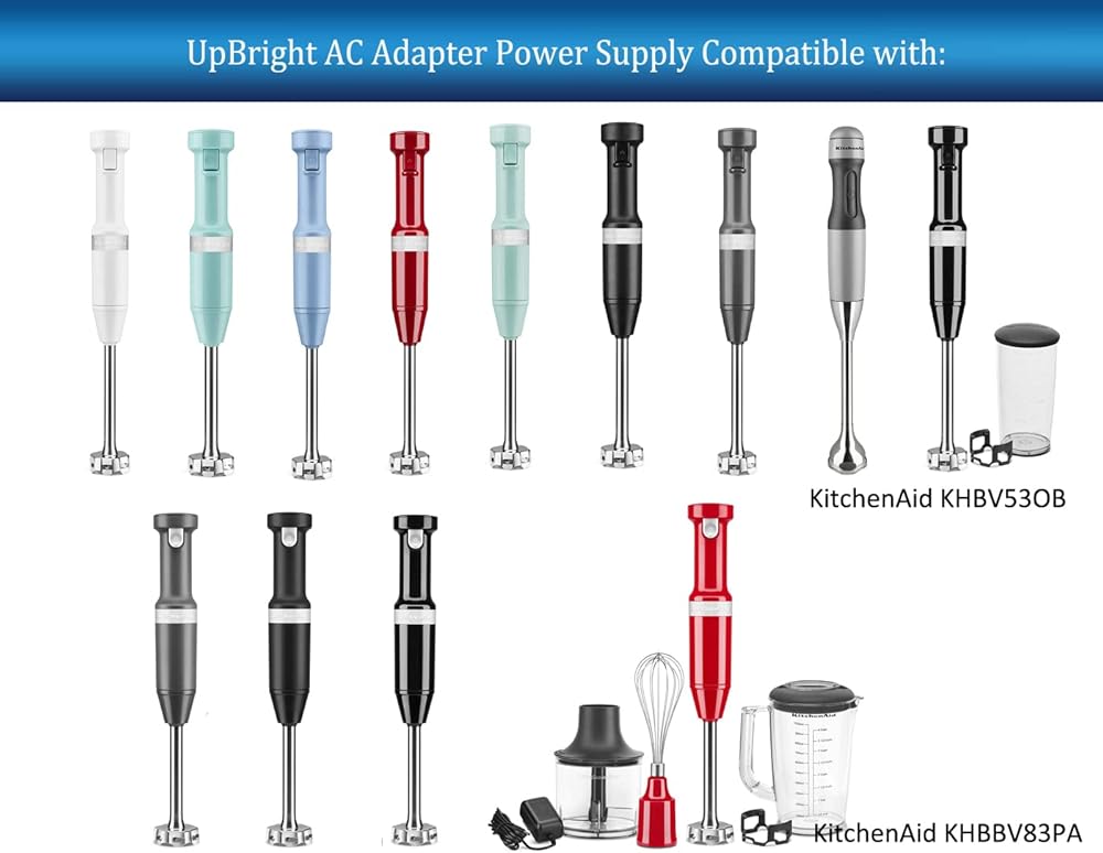 UpBright AC Adapter Charger Compatible with KitchenAid KHBBV53 KHBBV53DG KHBBV53BM KHBBV53VB KHBBV53ER KHBBV53OB KHBBV53PA KHBBV53WH KHBBV83 KHBBV83BM KHBBV83DG KHBBV83OB KHBBV83PA Kitchen Aid Blender