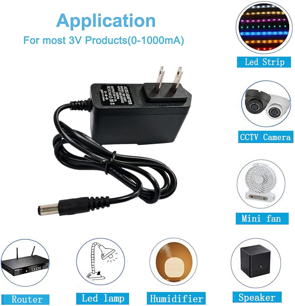 【استخدام واسع】سيتم استخدام مصدر الطاقة بتيار مستمر 3 فولت 1 امبير للأجهزة 3 فولت أقل من 3 واط، مثل المروحة الصغيرة ومكبرات الصوت وفرشاة الأسنان الكهربائية والنوافير والمزيد من الأجهزة بتيار مستمر 3 فولت 1 أمبير.