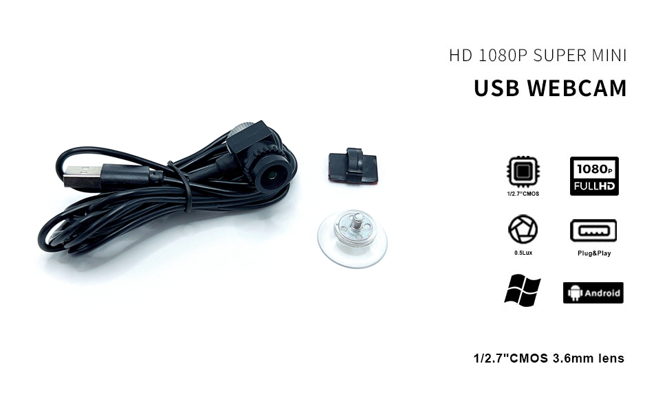 كاميرا USB 1080P: كاميرا ويب عالية الدقة 1920*1080 تستخدم مستشعر صور CMOS، دائرة متكاملة لتقليل الضوضاء الملونة، سرعة 30 إطارًا في الثانية للحصول على صور ثابتة، زاوية واسعة 90 درجة. من أجل الحصول على أكبر عرض ممكن، تحتوي وحدة كاميرا USB هذه على تأثير عين السمكة معين ويستخدم بشكل شائع في المعدات المهنية، مثل آلات مسح الوجه وآلات البيع.