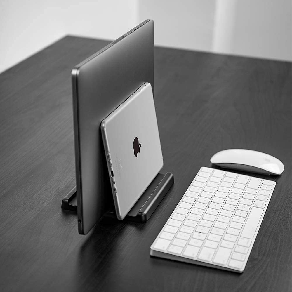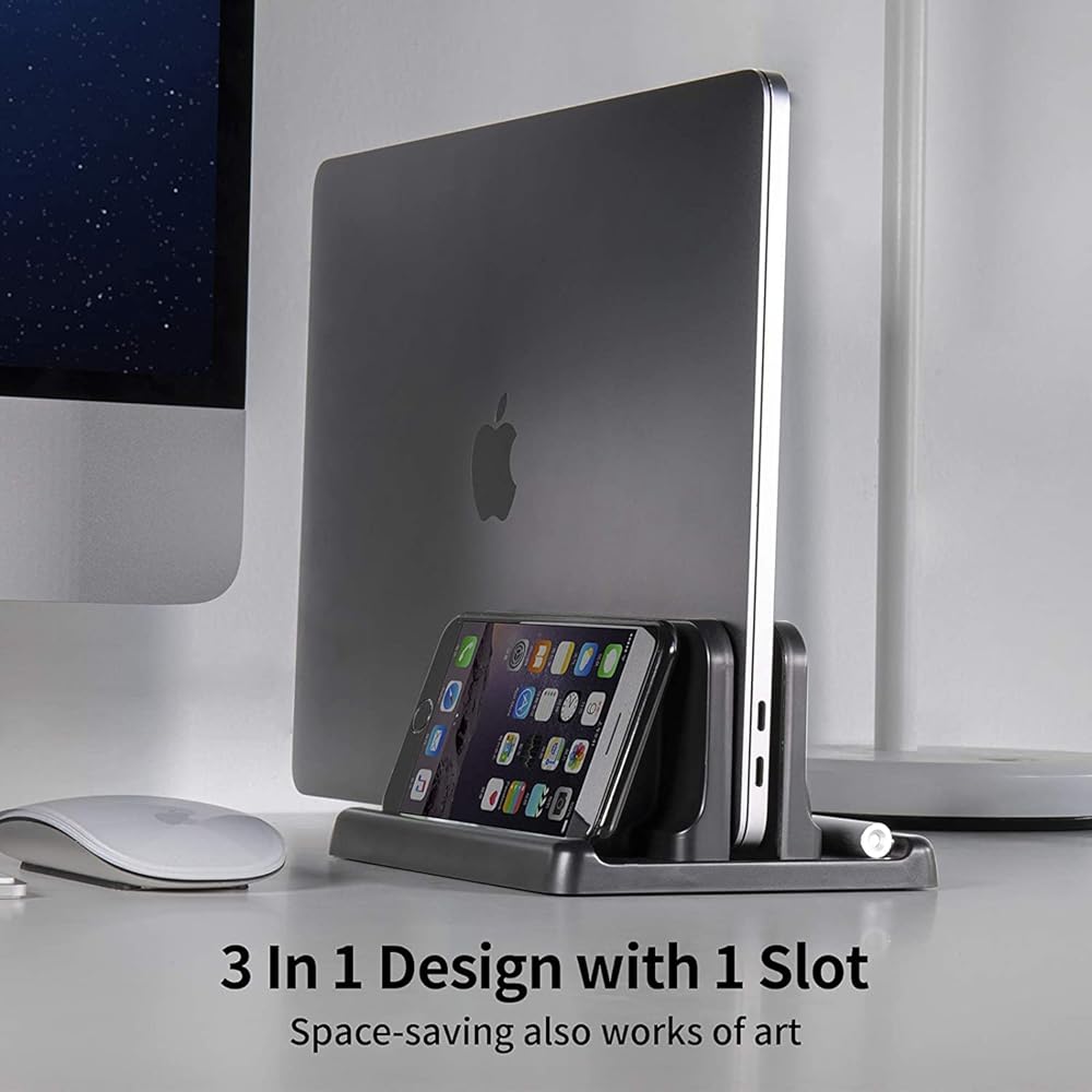 【تصميم 3 في 1】احمل كمبيوتر محمول وهاتفًا أو iPad عموديًا في نفس الوقت. يعد حامل الكمبيوتر المحمول رائعًا لتوفير المساحة وبناء مساحة أنيقة ومنظمة للمكتب.