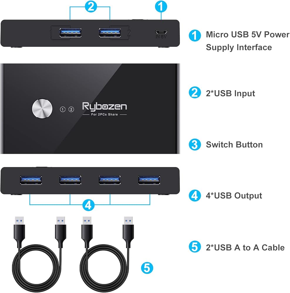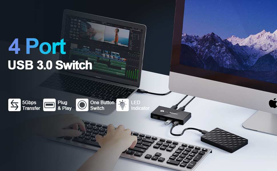 【ما تحصل عليه】 تتضمن العبوة: 1x مفتاح USB KVM، 2X كابلات USB 3.0 (1.5 متر)، 1x دليل المستخدم، 1x مشبك شحن Micro USB. دعونا نستمتع بمفتاح USB 3.0، والتبديل بين الأجهزة المضيفة ومشاركة 4 أجهزة USB بضغطة زر واحدة.
