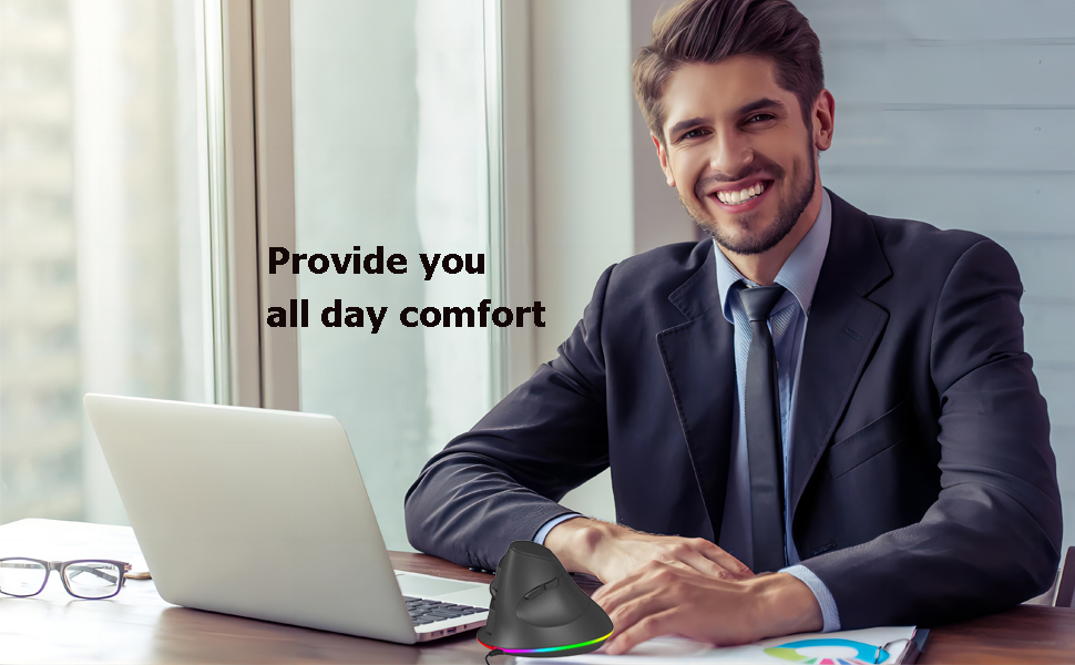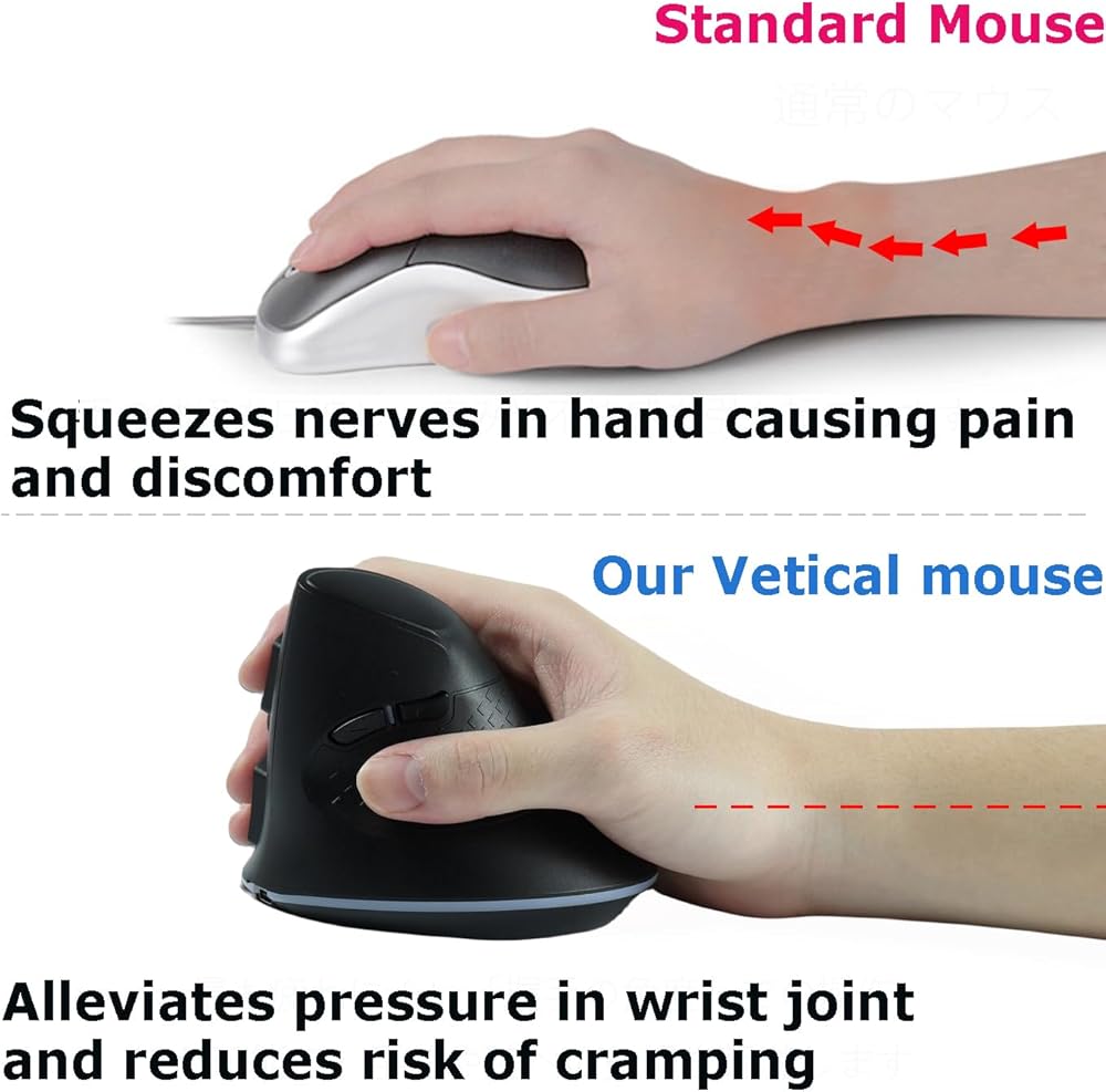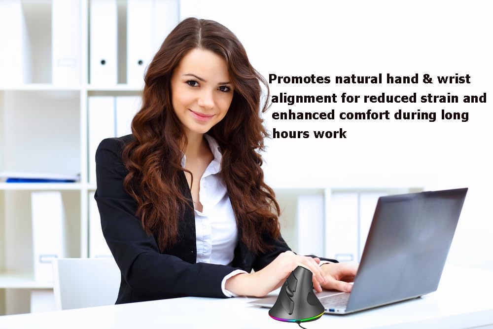 تخفيف آلام المعصم وعدم الراحة: يساعد الشكل المريح للفأرة الرأسية السلكية الخاصة بنا للأيدي الكبيرة أو الأيدي الوسطى على تقليل الضغط على معصمك، وتخفيف المشكلات الشائعة مثل متلازمة النفق الرسغي وآلام المعصم