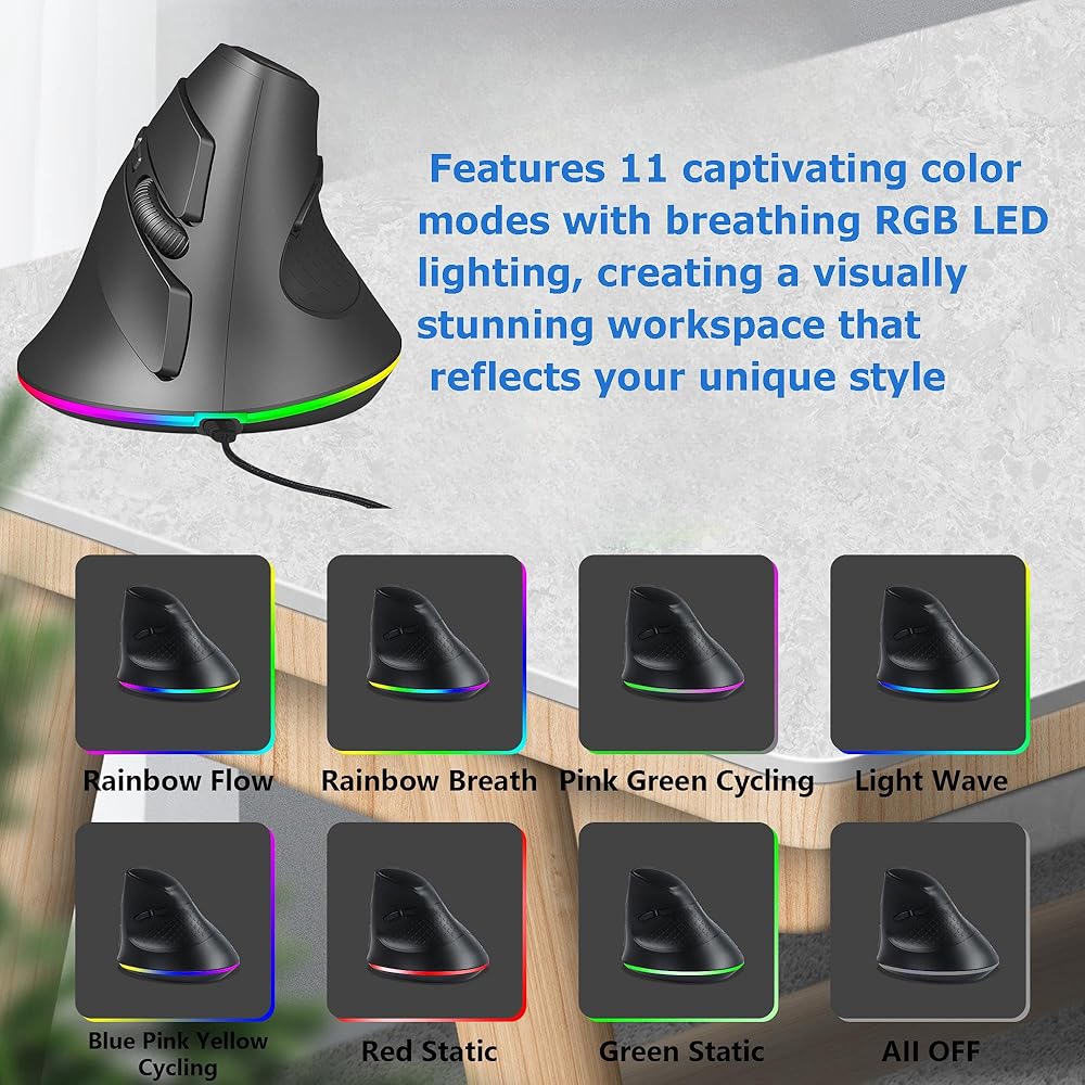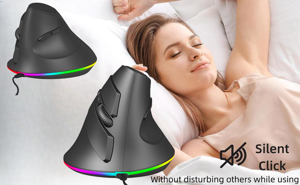 تشغيل صامت وهادئ: استمتع ببيئة عمل هادئة مع ميزة النقر الصامت للماوس العمودي المريح، والتي تقضي على الضوضاء والتشتتات غير الضرورية