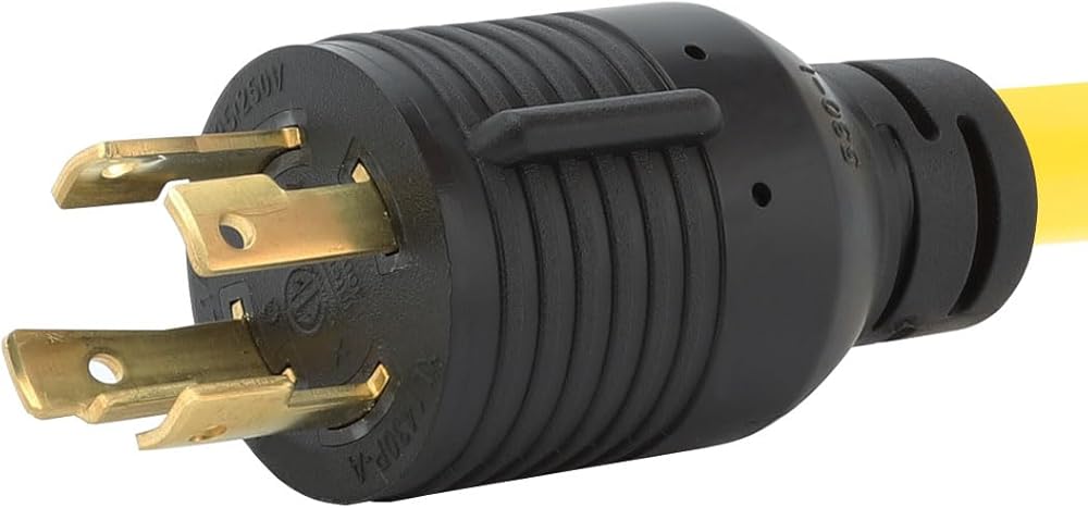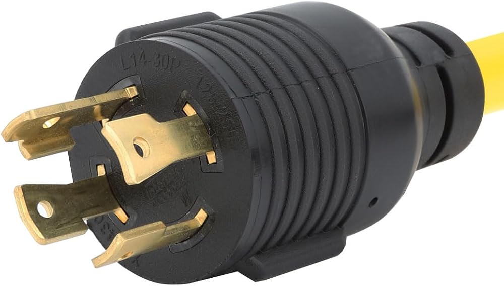 قابس ذكر Nema L14-30P ذو 4 شوكات إلى كابل محول الطاقة الأنثوي Nema 14-50R ذو 4 شوكات.