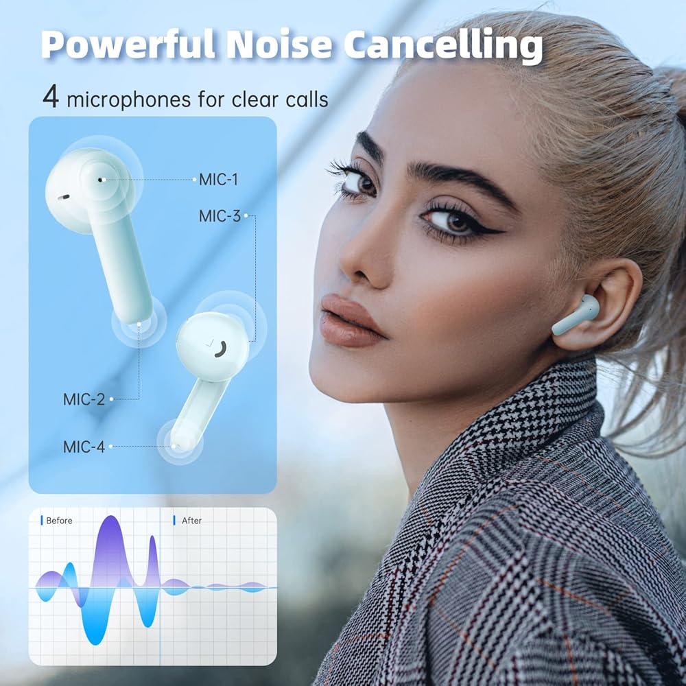 • 【سماعات رأس لاسلكية بخاصية إلغاء الضوضاء مع 4 ميكروفونات لإجراء مكالمات واضحة】تعتمد سماعات الأذن اللاسلكية GIEC تصميم 4 ميكروفونات وتقنية إلغاء الضوضاء ENC المتقدمة، وتمنع 90% من الضوضاء، وتلتقط الصوت البشري بدقة أثناء المكالمة، مما يقلل بشكل فعال من تداخل الضوضاء المحيطة، ويجعل الآخرين سماع صوتك بوضوح شديد.