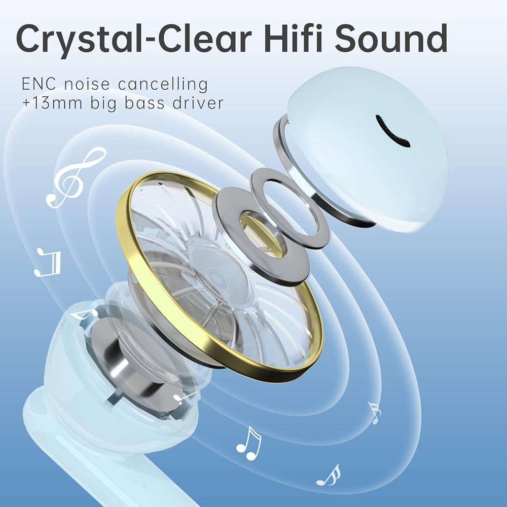 • 【جودة صوت ستيريو HIFI】سماعات أذن بلوتوث مصممة بهيكل صوتي شبه داخل الأذن، مصممة بمكبر صوت قوي كبير الحجم 13 مم ونظام صوت EQ احترافي يوفر صوت جهير قوي ومتوسط ​​ساطع وثلاثة أضعاف واضحة.