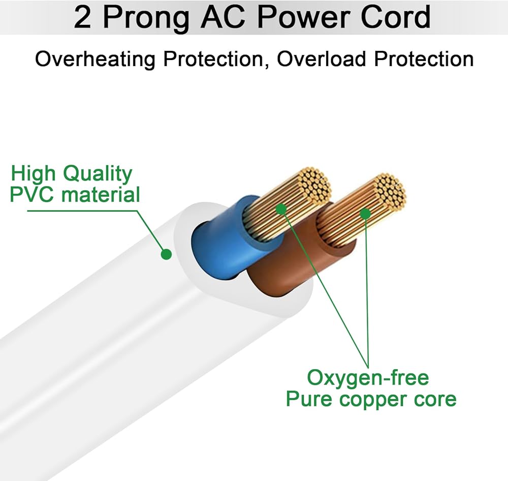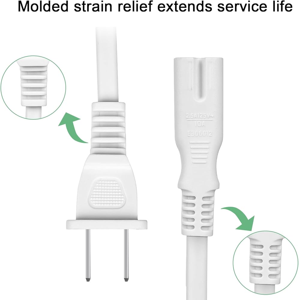 كابل سلك الطاقة متوافق مع Samsung LG TCL Hisense Insignia JVC Apple Toshiba TV-غير مستقطب، 10A 125V 18AWG-2 Prong Universal AC استبدال سلك كابل الطاقة (UL مدرج)