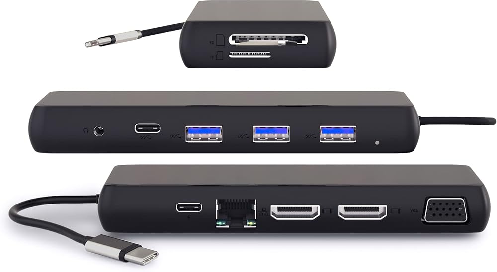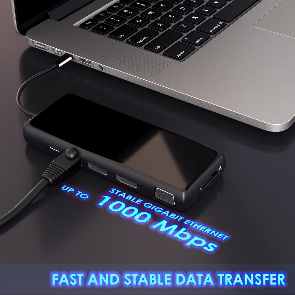 تأتي محطة الإرساء هذه مجهزة بمنفذ Gigabit RJ-45 Ethernet وقارئ بطاقات Micro SD وقارئ بطاقات SD ومنفذ صوت رباعي الأقطاب. يمكنك الوصول إلى الإنترنت عالي السرعة، ونقل البيانات من بطاقات مختلفة، والاستمتاع بإخراج صوت واضح، كل ذلك من جهاز واحد صغير الحجم.
