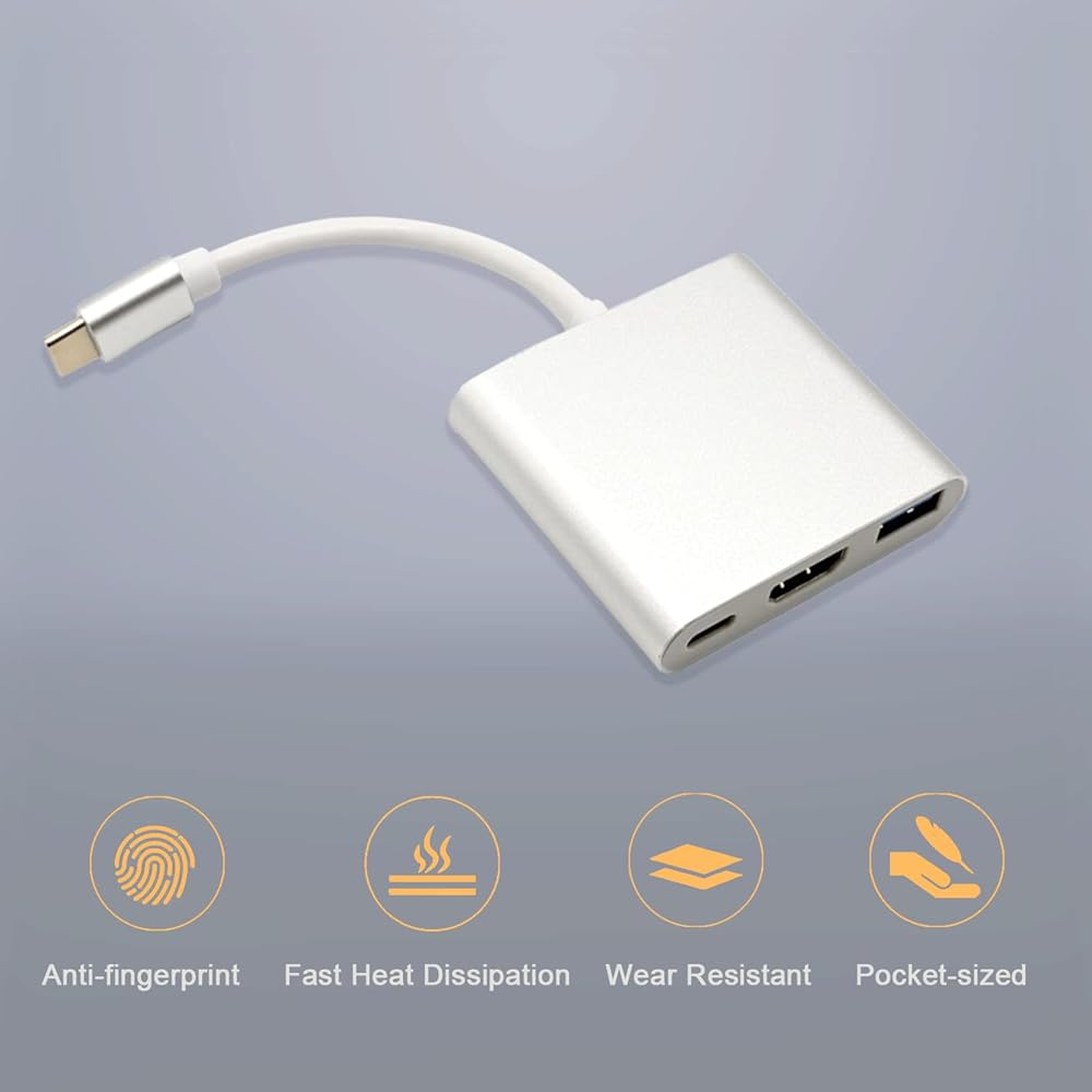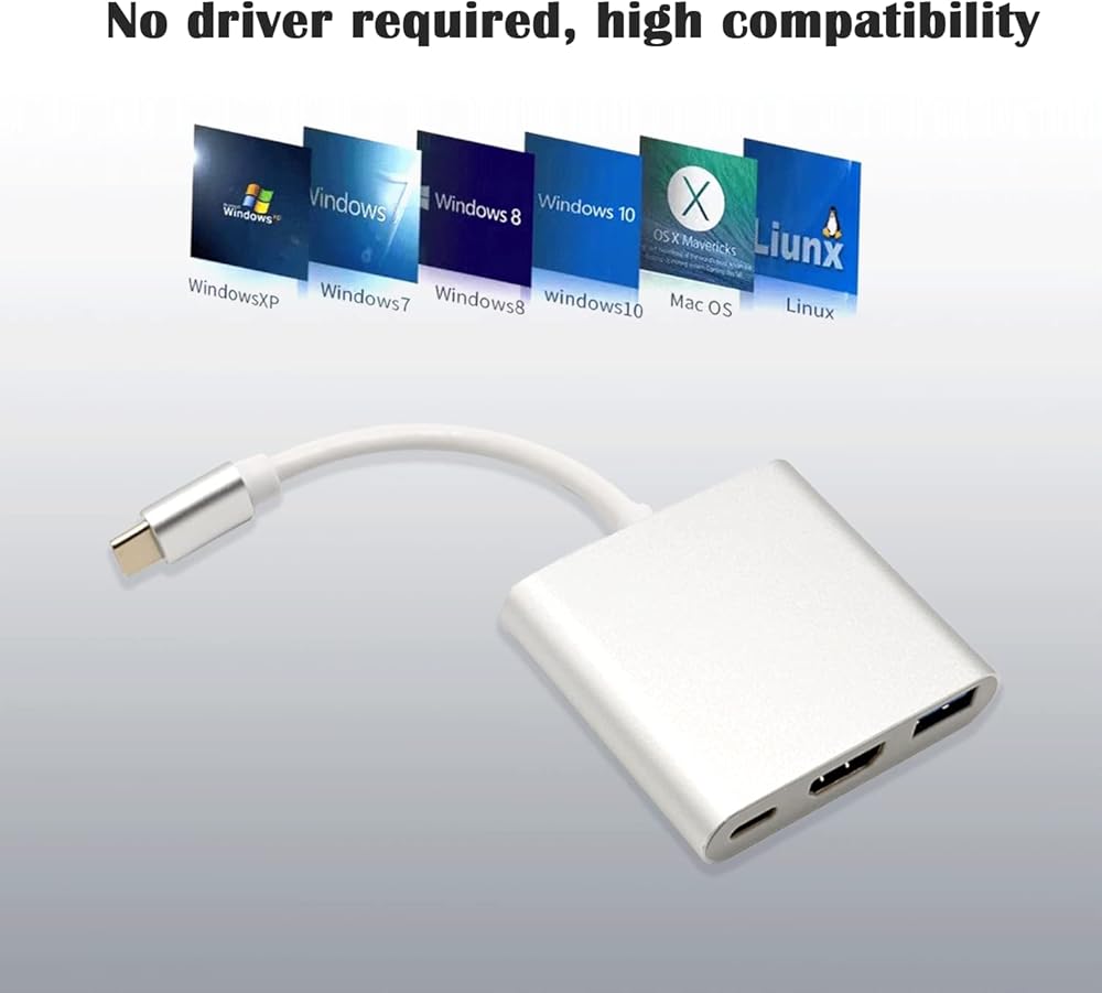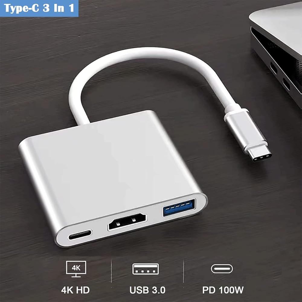 موزع USB C 3 في 1: يمكنك توصيل أجهزة متعددة بسهولة بفضل المحول 3 في 1 الذي يتميز بمنافذ USB-C وHDMI وUSB 3.0.