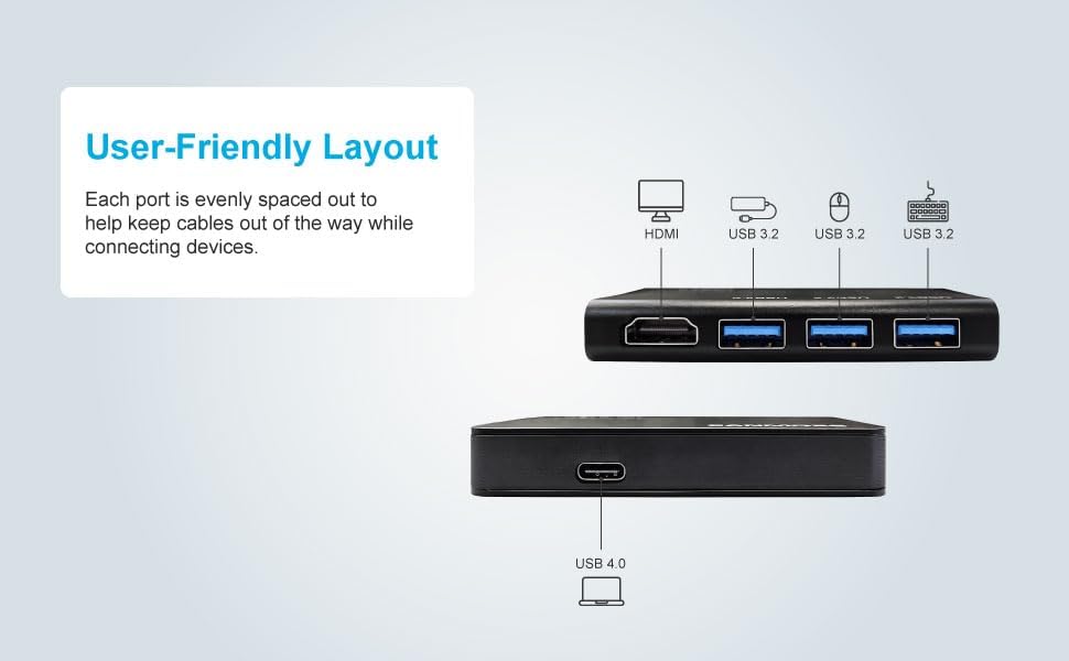 تقنية USB4: يتميز CANMORE TY02 بتقنية USB4 التي توفر عرض نطاق ترددي مطور للفيديو والبيانات، ومعدلات نقل سريعة تصل إلى 40 جيجابايت في الثانية، والتوافق مع الأجهزة الأخرى USB-A 3.2 وHDMI 8K 60 هرتز.