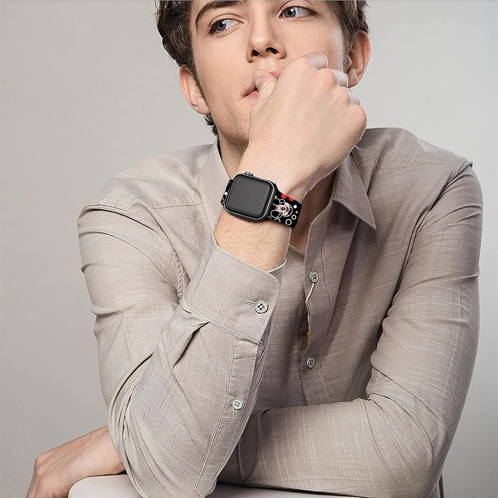 【سهلة التركيب】تتميز الأربطة الكرتونية بسهولة التركيب وتأتي مع عروات ساعة من كلا الطرفين، والتي تثبت على واجهة Apple iWatch بدقة وأمان، ويمكن أيضًا إزالة الأربطة بسهولة. إغلاق بإبزيم. إبزيم من الفولاذ المقاوم للصدأ لقفل الحزام. أكثر قوة ومنع الساعة من السقوط.
