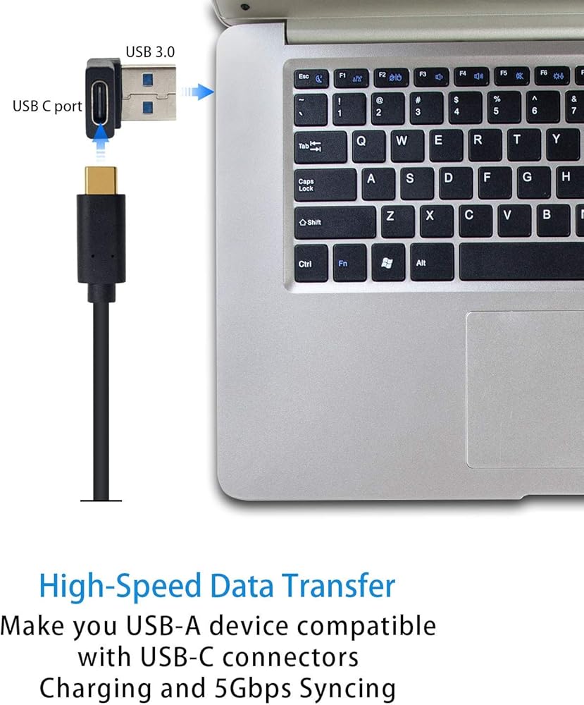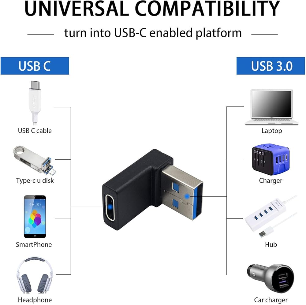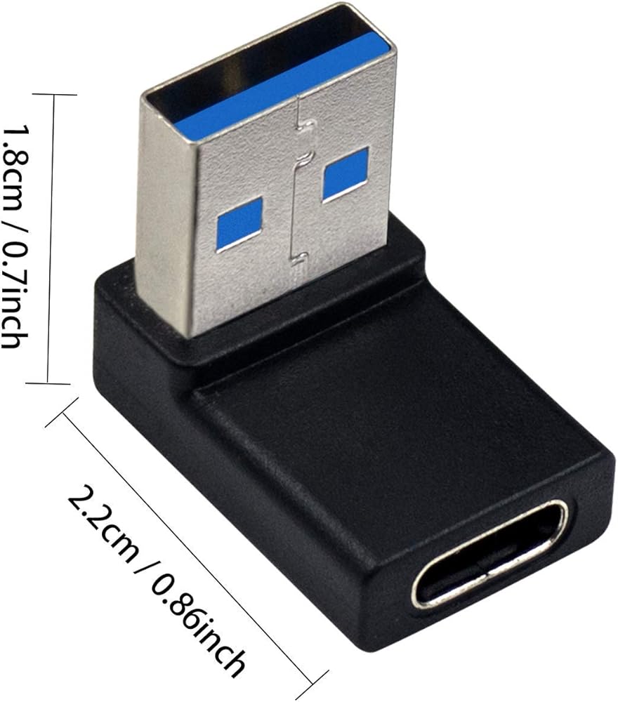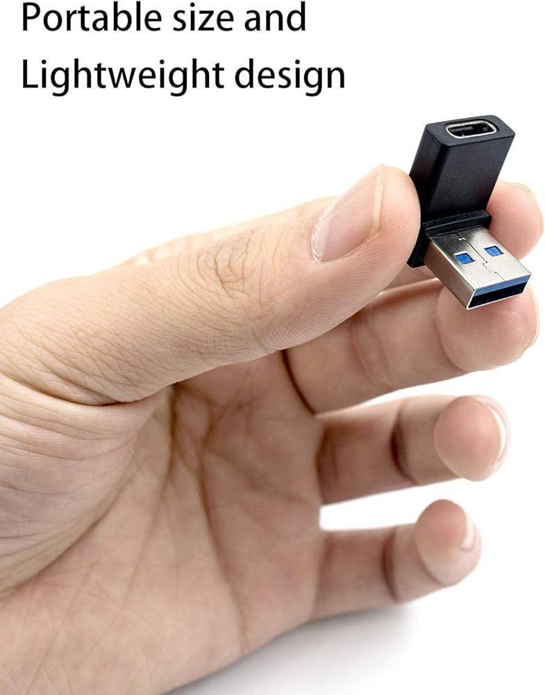 محول يو اس بي نوع سي إلى يو اس بي بزاوية 90 درجة يسمح لك بتوصيل أجهزة اللاب توب أو الشواحن يو اس بي نوع ايه بكابل يو اس بي نوع سي ومحاور يو اس بي نوع سي ووحدات يو اس بي الطرفية من النوع سي.