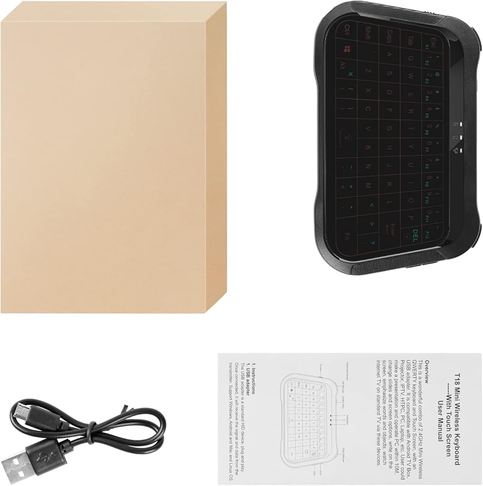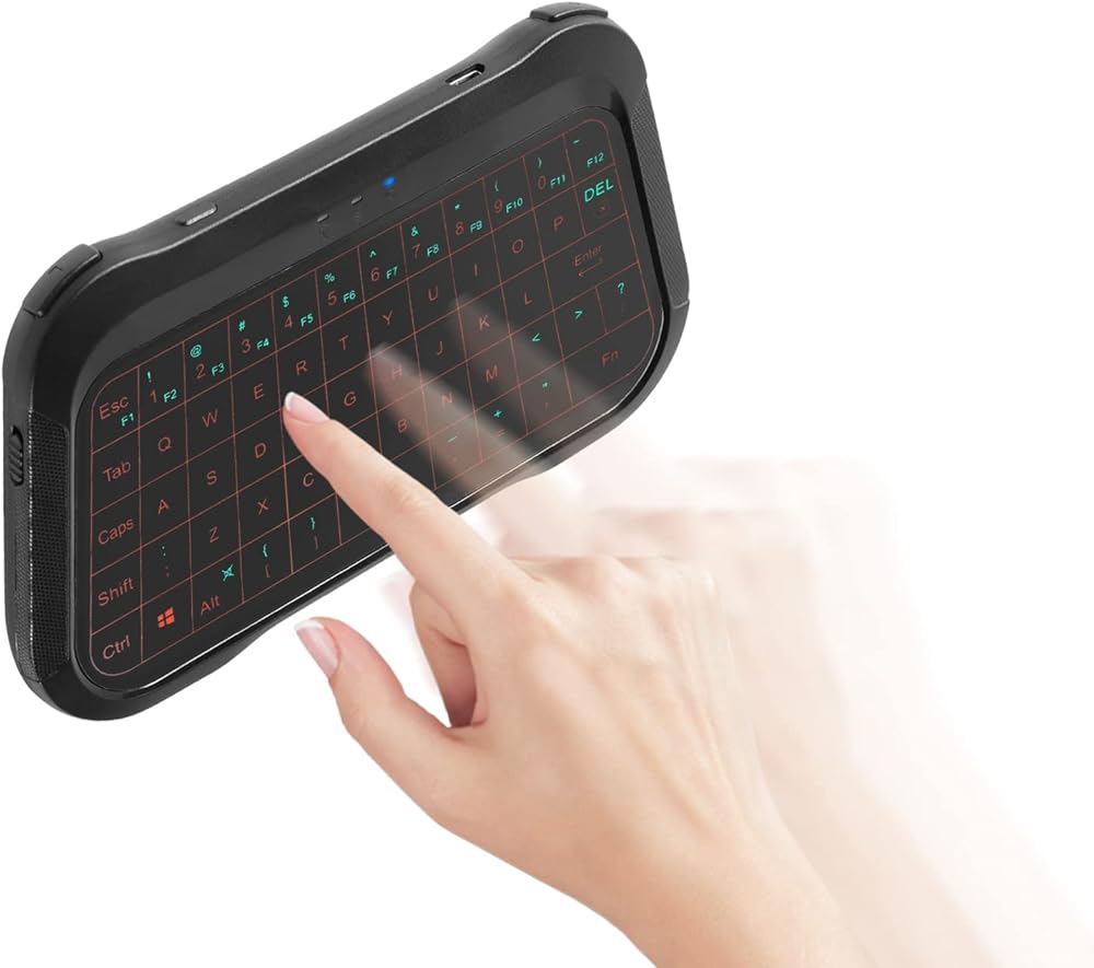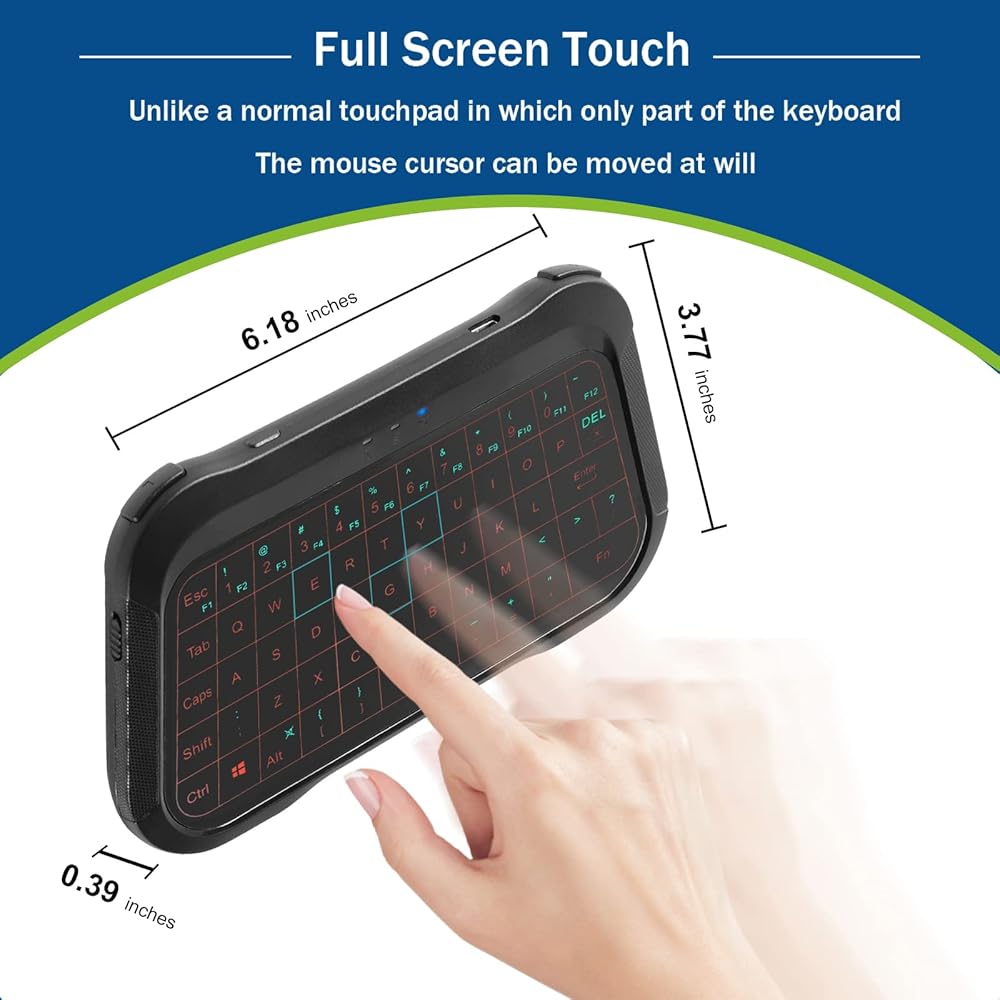 كيبورد صغير لاسلكي باضاءة خلفية كاملة الحجم مع لوحة لمس وشاشة لمس لاجهزة اندرويد تي في بوكس/تلفزيون ذكي/الكمبيوتر/ويندوز/MacOS/لينكس/اكس بوكس/صندوق التلفزيون الذكي، هدية للاطفال والكبار