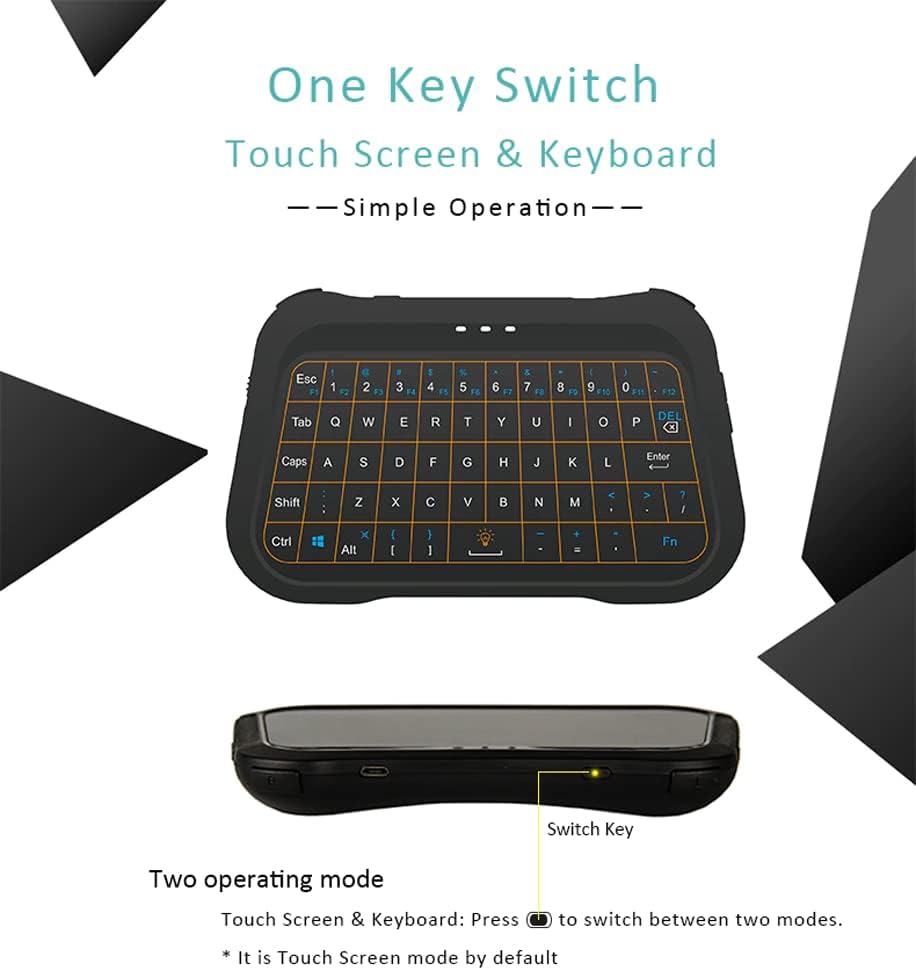 تشغيل اختصار: تجعل الكيبورد اللاسلكية ذات الإضاءة الخلفية حياتك أسهل وأكثر متعة باستخدام جهاز التحكم عن بعد اللاسلكي لكتابة الرسائل النصية/الإنترنت/تشغيل الألعاب على الأريكة بدون العديد من أجهزة التحكم عن بعد! وظيفة اللمس! تتضمن وظائف اللمس للوحة المفاتيح التي تعمل باللمس حركة الماوس وزر الماوس الأيسر / الأيمن وتمرير الشاشة ومفتاح المهام وضبط الإضاءة الجوية. (تدور محاور لوحة اللمس تلقائيًا حسب المقبض).. ما تحصل عليه 1 × 2.