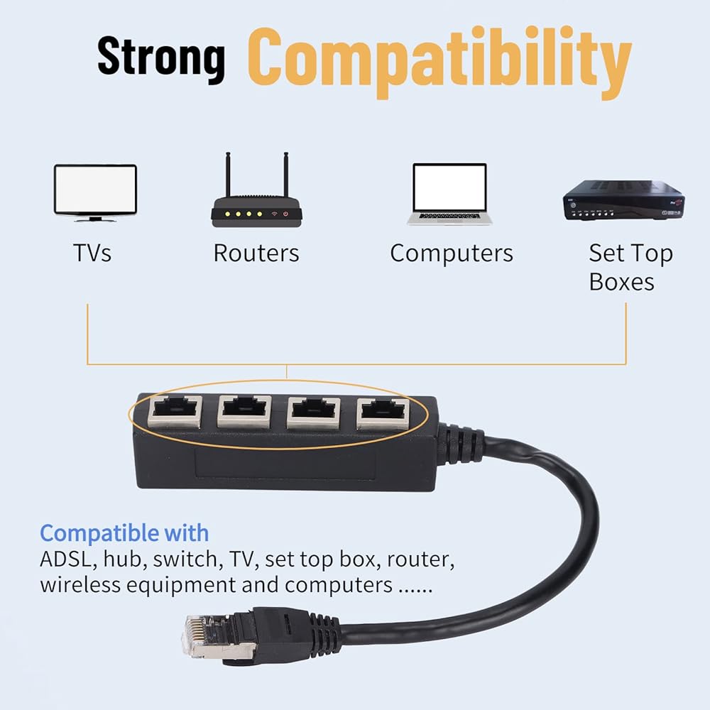 أفضل تصميم: يقوم موزع كابل إيثرنت RJ45 ذكر إلى 4 أنثى بحل مشكلة تجنب سحب الكابلات ذهابًا وإيابًا. يمكن استخدامه أيضًا كامتداد. مصنوعة من مواد عالية الجودة لنقل سلس