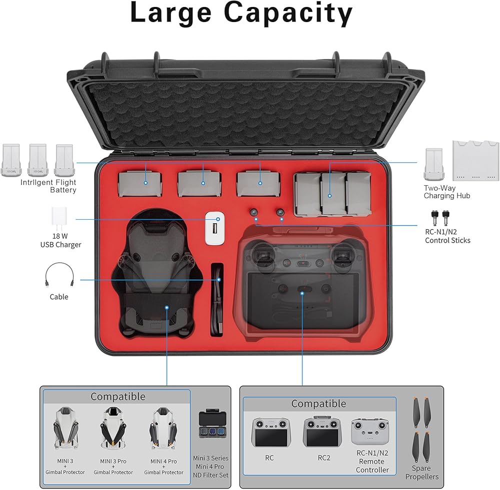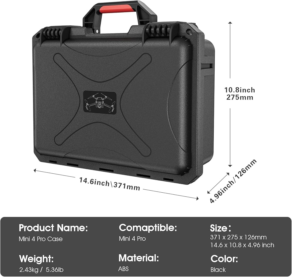 تم تصميم الحافظة الصلبة المقاومة للماء لحمل طائرة درون ميني 4 برو نفسها بالإضافة إلى الملحقات والملحقات التي تحتاجها.