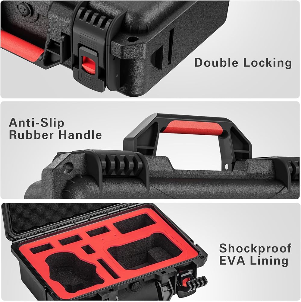 【سهلة الاستخدام والحمل】تم تصميم حافظة ميني 4 برو الصلبة المقاومة للماء بمقبض قوي وثابت موفر للجهد وسهل الرفع. توفر الأبازيم والأقفال المزدوجة أمانًا فائقًا مما يضمن سلامة جهازك وأمانه، حتى عند تسجيل الوصول دون قلق. اجعل رحلتك أكثر راحة ومتعة.