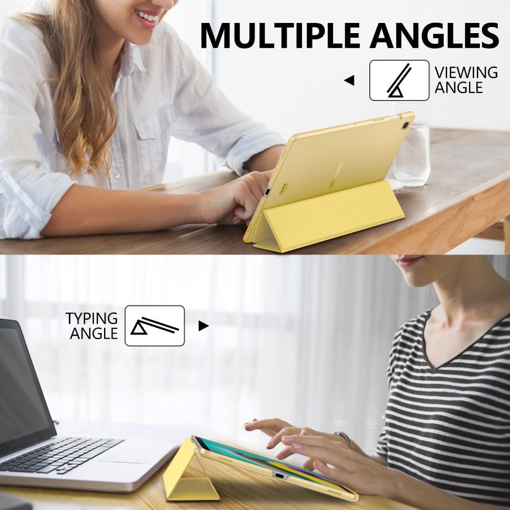 يناسب تمامًا جهاز Samsung Galaxy Tab S5e SM-T720/SM-T725 إصدار 2019. يتم تنشيط جهاز Galaxy Tab S5e أو وضعه في وضع السكون تلقائيًا عند فتح الغطاء وإغلاقه. سهولة الوصول إلى جميع الميزات وعناصر التحكم.