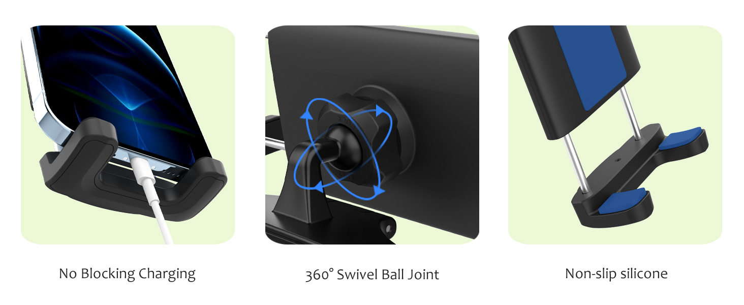 • 【دوران 360 درجة】يتيح لك رأس المفصل الكروي 360 درجة لحامل التابلت في السيارة التبديل بسهولة إلى الزاوية والموضع الصحيح، مما يوفر لك زاوية رؤية مثالية. لن يعيق خط الرؤية أثناء القيادة لضمان ثبات القيادة والسلامة. يمكنك ضبطه على زاوية الرؤية المفضلة لديك، حتى تتمكن من الحصول على جميع التابلت بسهولة عندما تحتاج إلى الراحة، مثل التنقل والموسيقى والأفلام وما إلى ذلك.