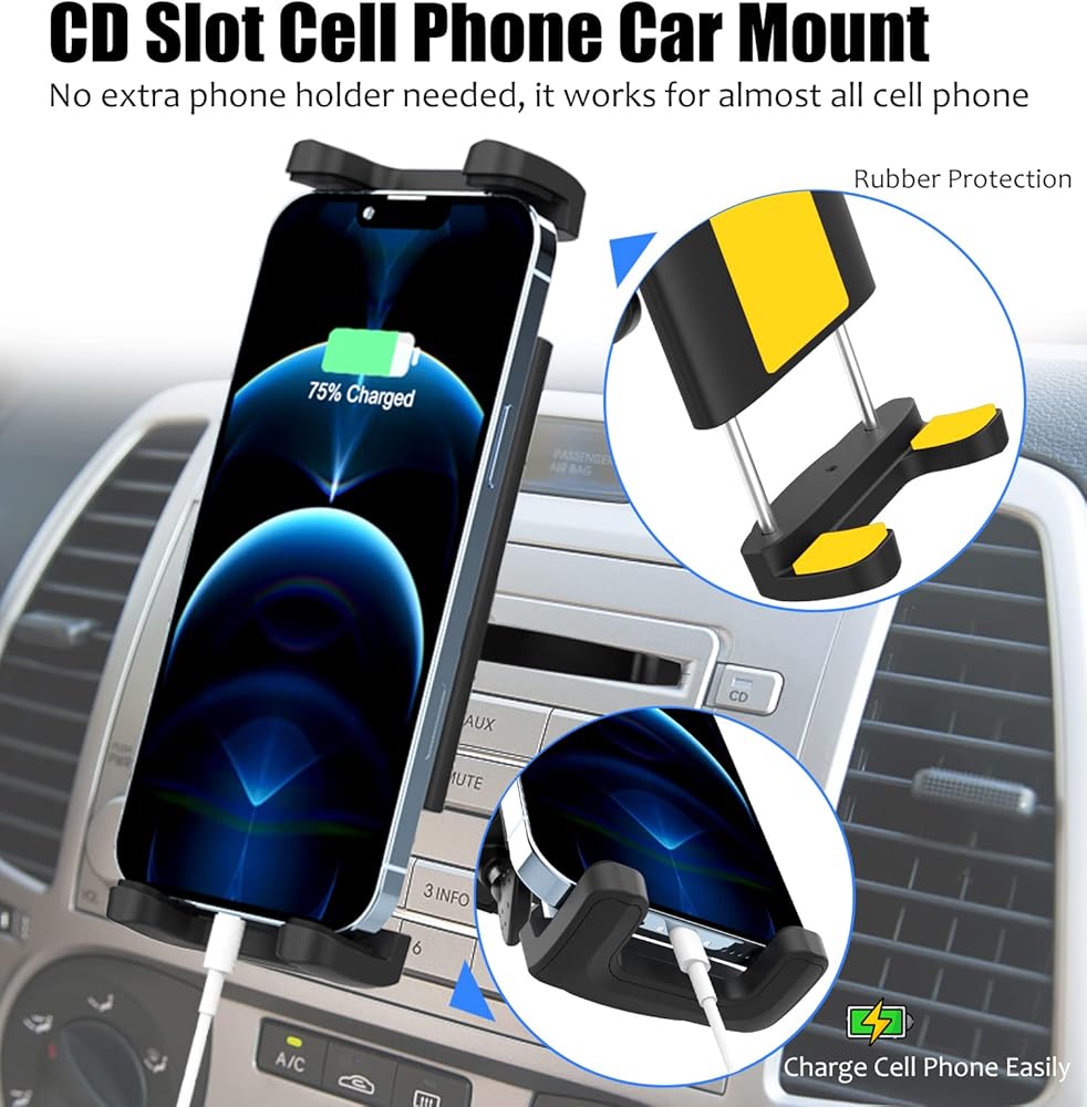 • 【يناسب جميع فتحات الأقراص المضغوطة تقريبًا】لا يتلف حامل الهاتف لمشغل الأقراص المضغوطة هذا مشغل الأقراص المضغوطة ويمكنك تدوير المقبض لتخصيص العرض لملاءمة محكمة، حامل فتحة القرص المضغوط مناسب لمعظم المركبات ذات مشغلات الأقراص المضغوطة القياسية. (لا يُنصح به لمشغلات الأقراص المضغوطة ذات الوجه المستدير
