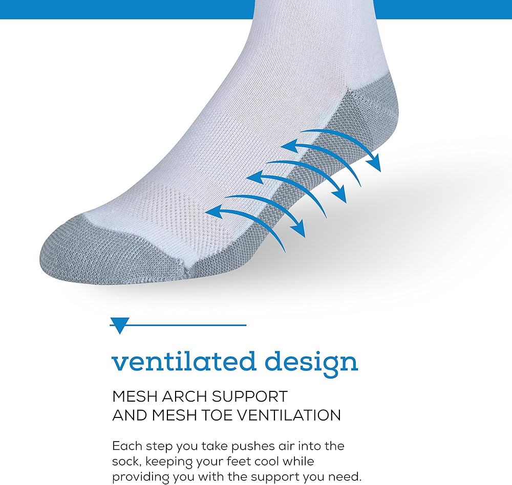 جوارب عمل للرجال من Zeke - 12 عبوة - نعل مبطن - تهوية شبكية - دعم للقوس - ناعمة ومريحة (أبيض، مقاس الجوارب 10-13/مقاس الحذاء 6-12)