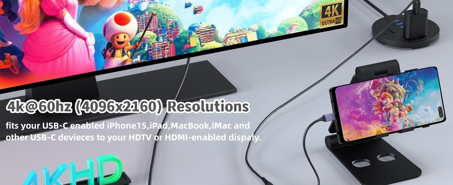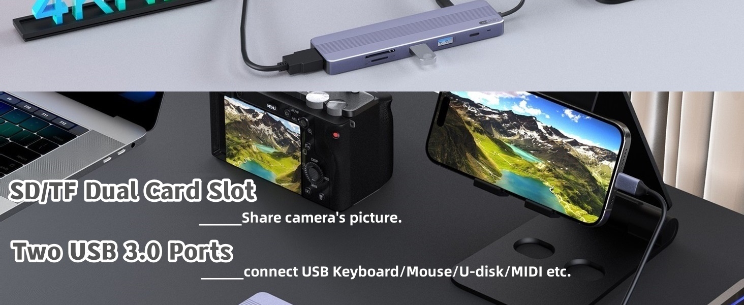 【شاشة UHD 4K@60 هرتز】يسمح لك موزع USB C هذا مع HDMI 4K بالاتصال بمنفذ HDMI للمرآة أو تمديد شاشتك إلى شاشة خارجية بسرعة تصل إلى 4K@60 هرتز، مما يجعل من السهل القيام بمهام متعددة عبر العديد من التطبيقات.