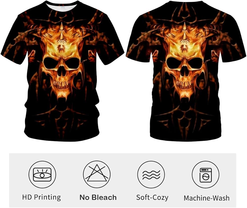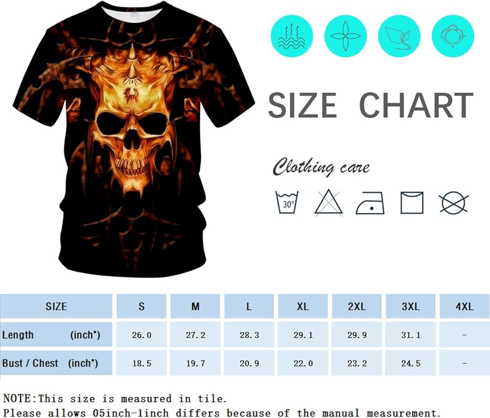 المواد: تي شيرت عصري رائع بنمط جمجمة ثلاثي الأبعاد مصنوع من 88% بوليستر + 12% ألياف لدنة، بدون حبوب، يمكن غسله في الغسالة، مسامي وناعم