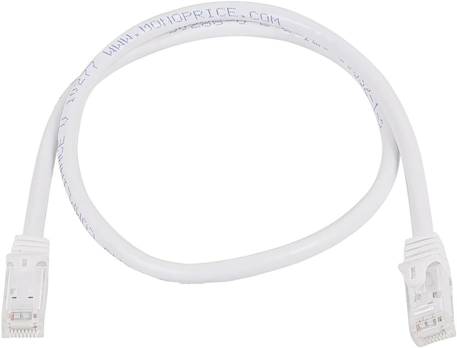 Monoprice - 111306 Flexboot Cat5e Ethernet Patch Cable - سلك إنترنت الشبكة - RJ45، مجدولة، 350 ميجا هرتز، UTP، سلك نحاسي عاري نقي، 24AWG، 2 قدم، أبيض