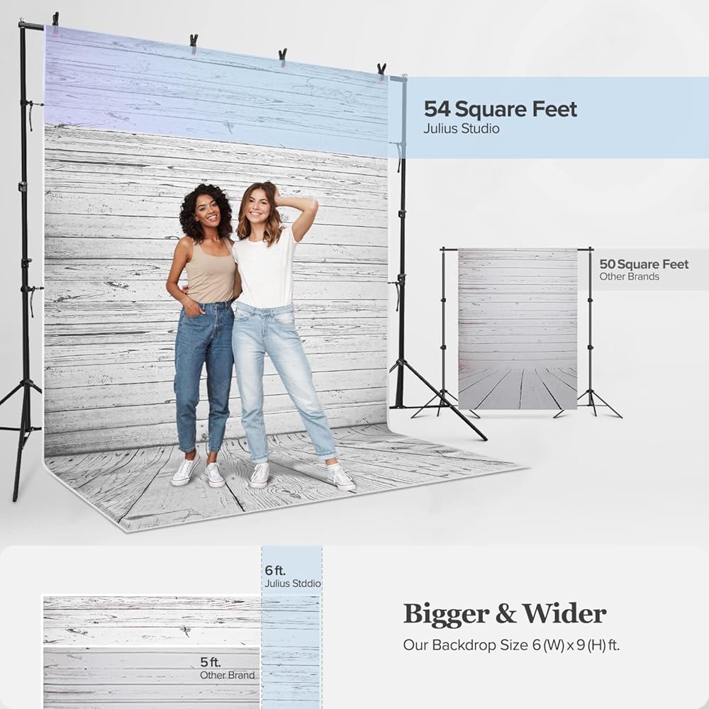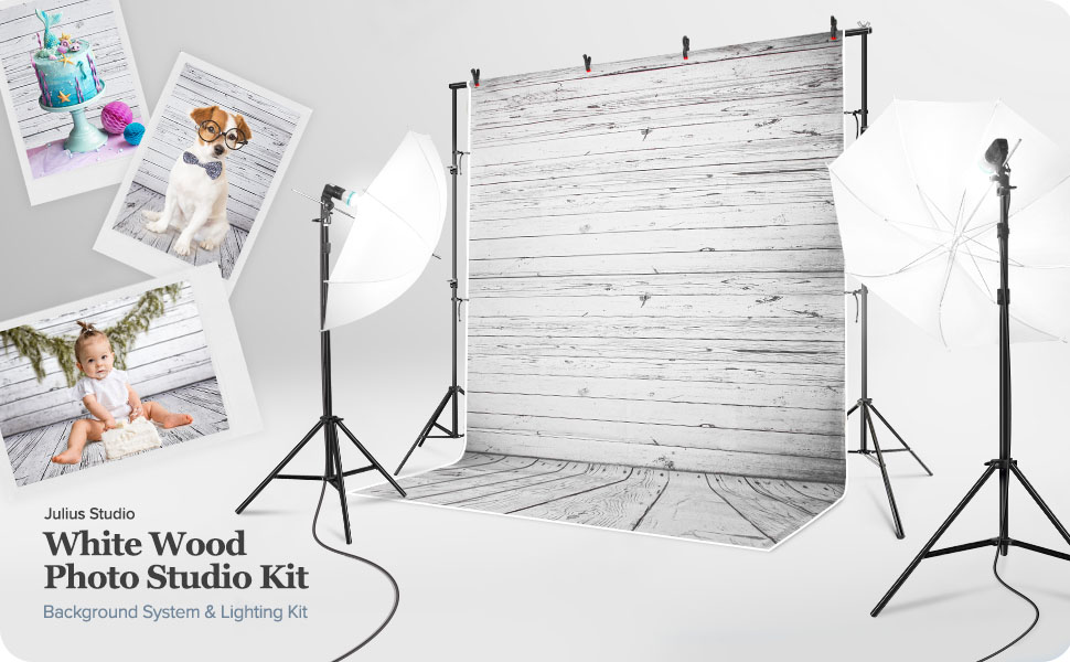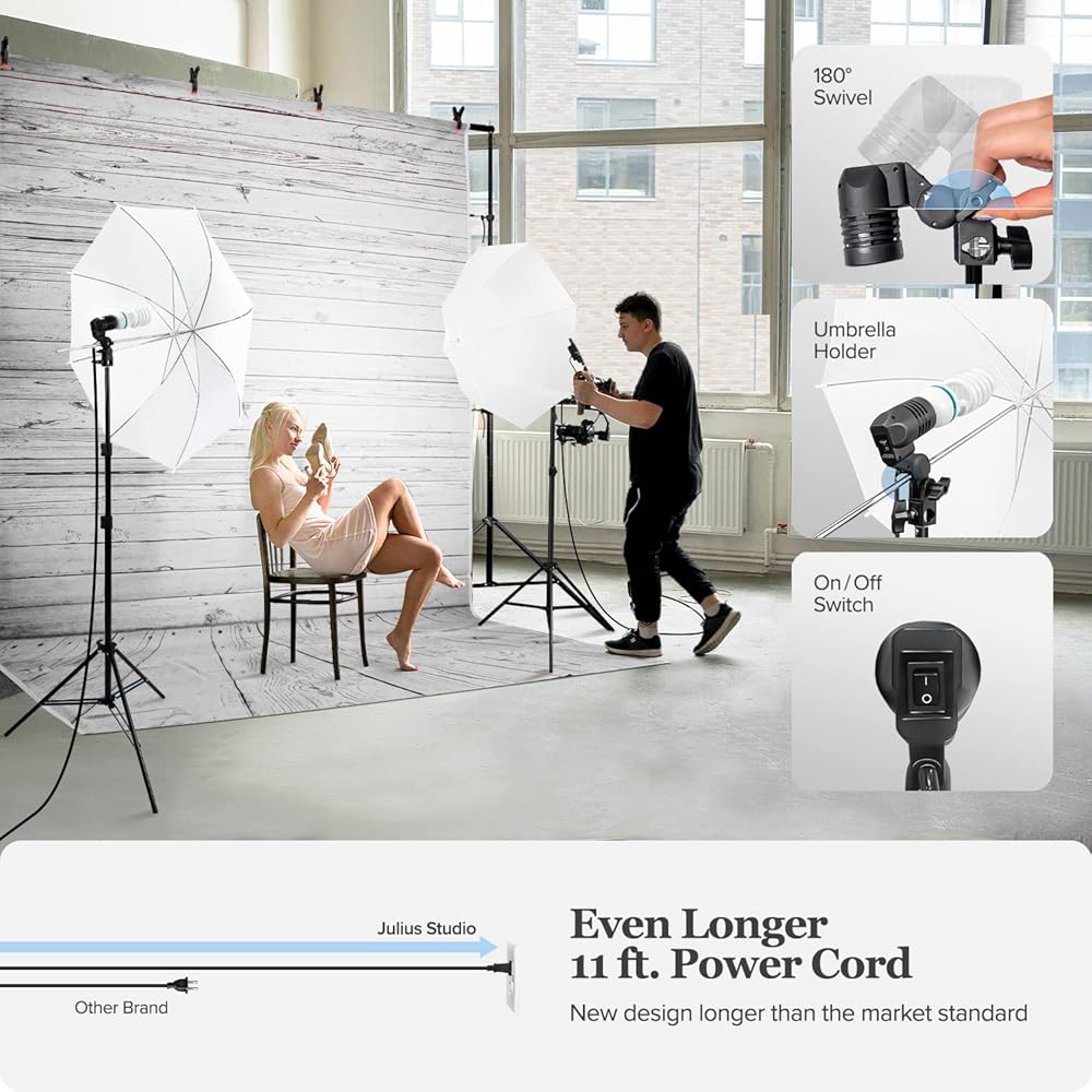 جوليوس ستوديو خلفية أرضية خشبية من الموسلين مع مجموعة إضاءة مظلة، دعم الخلفية، حامل مصباح، مقبس زنبركي، أبيض وأسود، مظلة عاكس للتصوير الفوتوغرافي ستوديو JSAG355