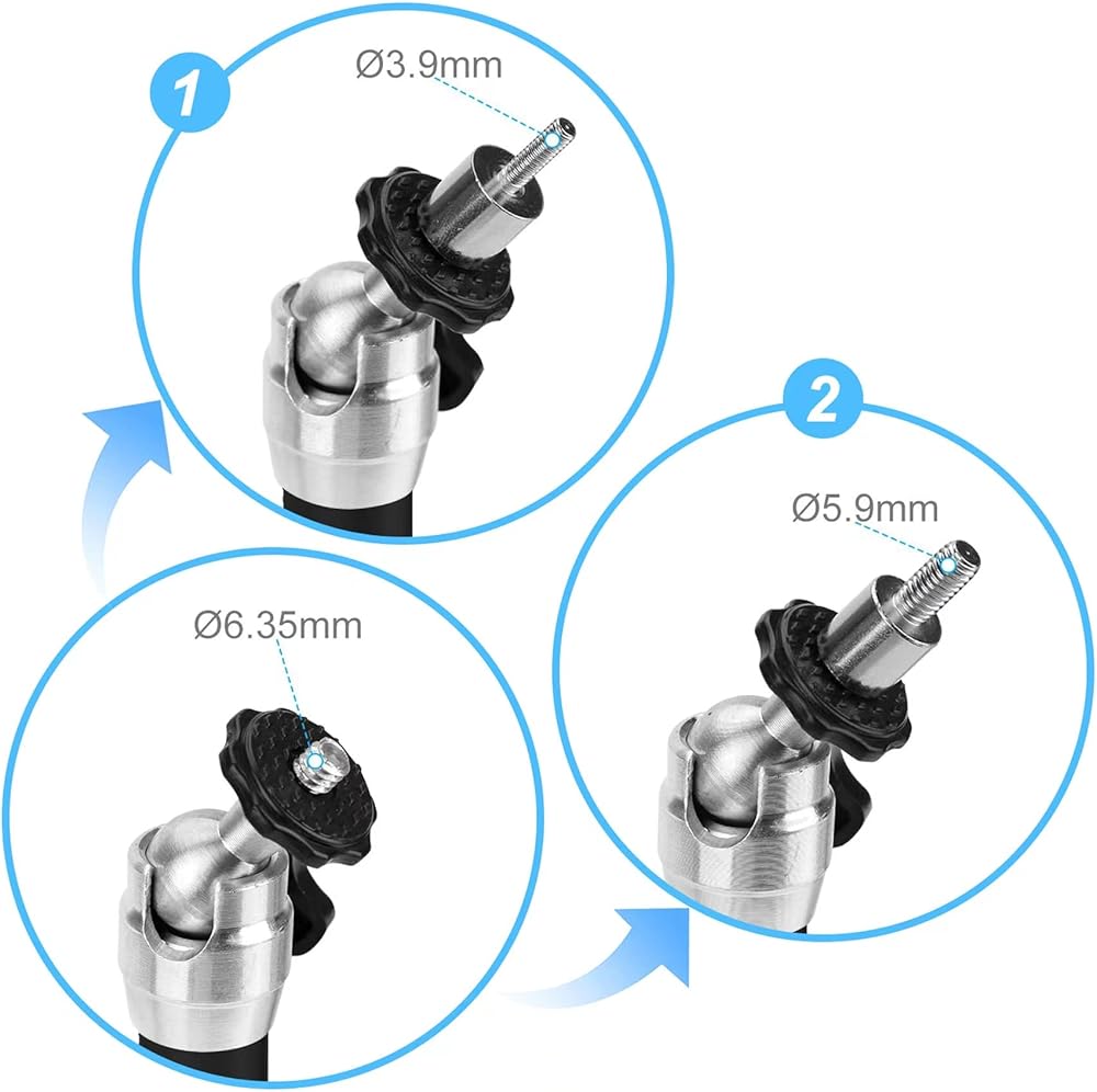 رأس تحويل لولبي، أنثى 6.35 ملم إلى ذكر 3.9 ملم أو 5.9 ملم، يدعم تثبيت الكاميرا، حامل الشاشة، حامل جهاز العرض، متوافق مع كيو كيه كيه كيه ودي ار جيه ابجراد ودي بي باور وانكر وايه ايه اكس ايه تكنولوجيز وارتلي ولونجسون وابيمان ومعظم أجهزة العرض الصغيرة الأخرى.