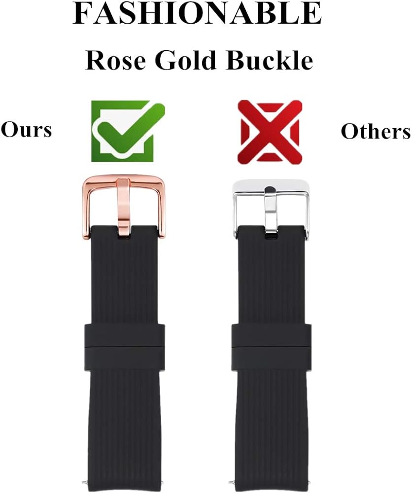 سوار بديل من السيليكون مقاس 20 ملم من تيكميكو متوافق مع ساعة جالاكسي 42 ملم مع مشبك ساعة ذهبي وردي