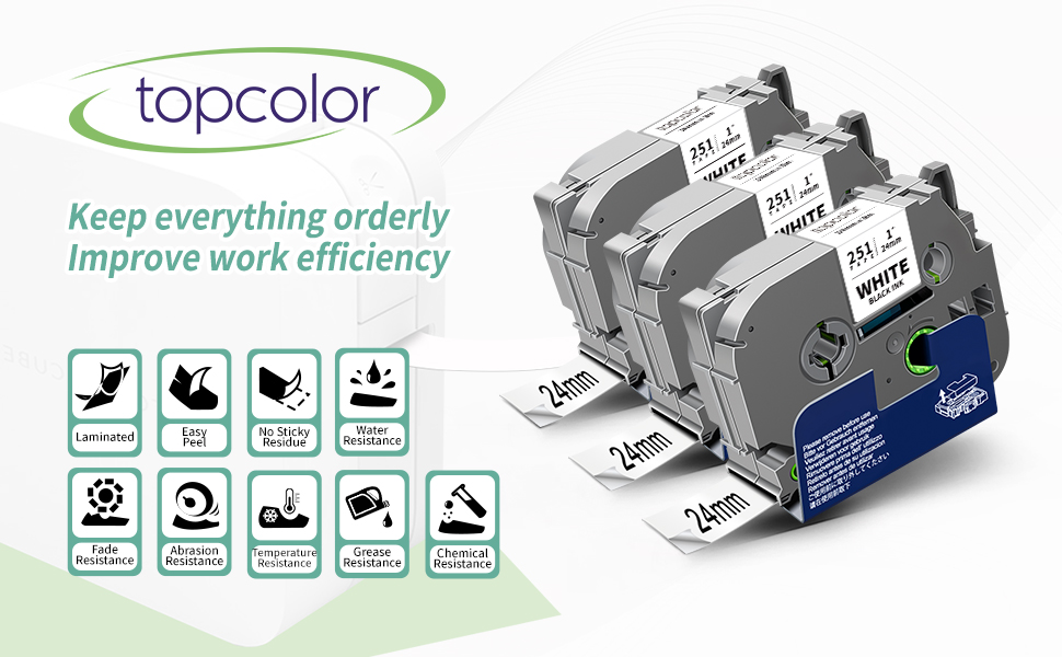سهل التقشير والطباعة بوضوح: ظهر مسكوب لسهولة التقشير. لا تبقى أي بقايا لزجة عند إزالة الملصقات. قم بالطباعة بشكل واضح وطبيعي باستخدام شريط TZ مقاس 1 بوصة من Topcolor. لحفظ شريط TZ، يمكنك ضبط الهامش قبل استخدامه. يعد شريط الملصقات Topcolor خيارًا مثاليًا جيدًا لوضع علامات على العناصر ويساعدك على تصنيفها.