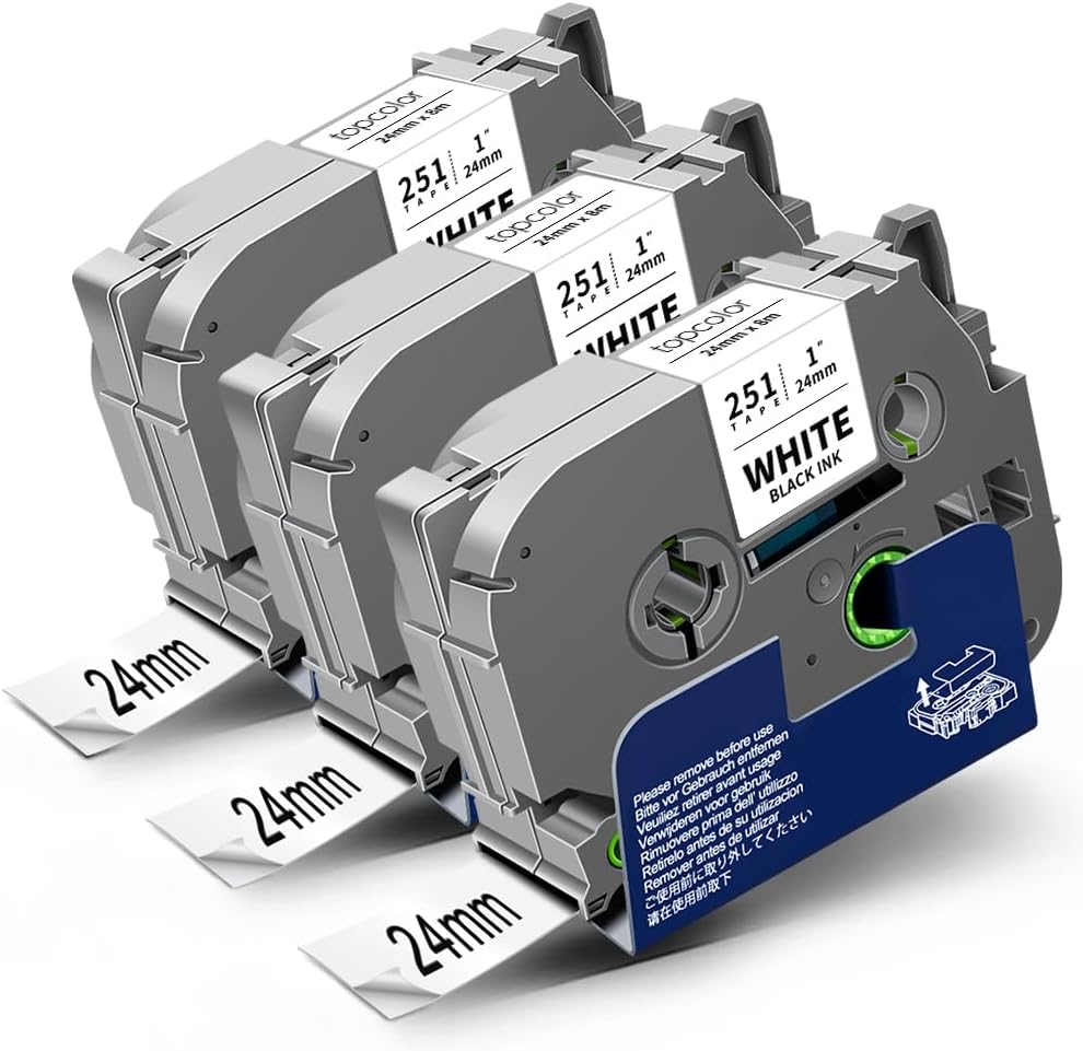 محتوى العبوة: 3 عبوات متوافقة مع شريط Brother 24 مم 0.94 أبيض مصفح ptouch tze tz 24 مم tze-251 tze251 tz-251 tz251 عبوات ملصقات مقاس 1 بوصة. الحجم: 0.94 بوصة × 26.24 قدم (24 مم × 8 م). اللون: أسود على أبيض.