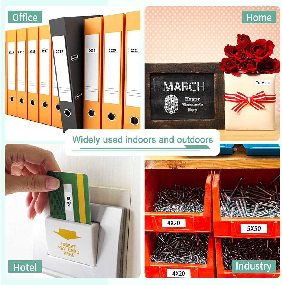 تطبيقات واسعة: شريط أبيض مصفح مقاس 24 مم 0.94 بوصة متوافق مع المنزل والمكتب والمدرسة والصناعة والمستودع ومختبر الكيمياء والفندق والمستشفى ومثالي لوضع علامات على توابل المطبخ والملفات والمجلدات والأرفف والكتب.
