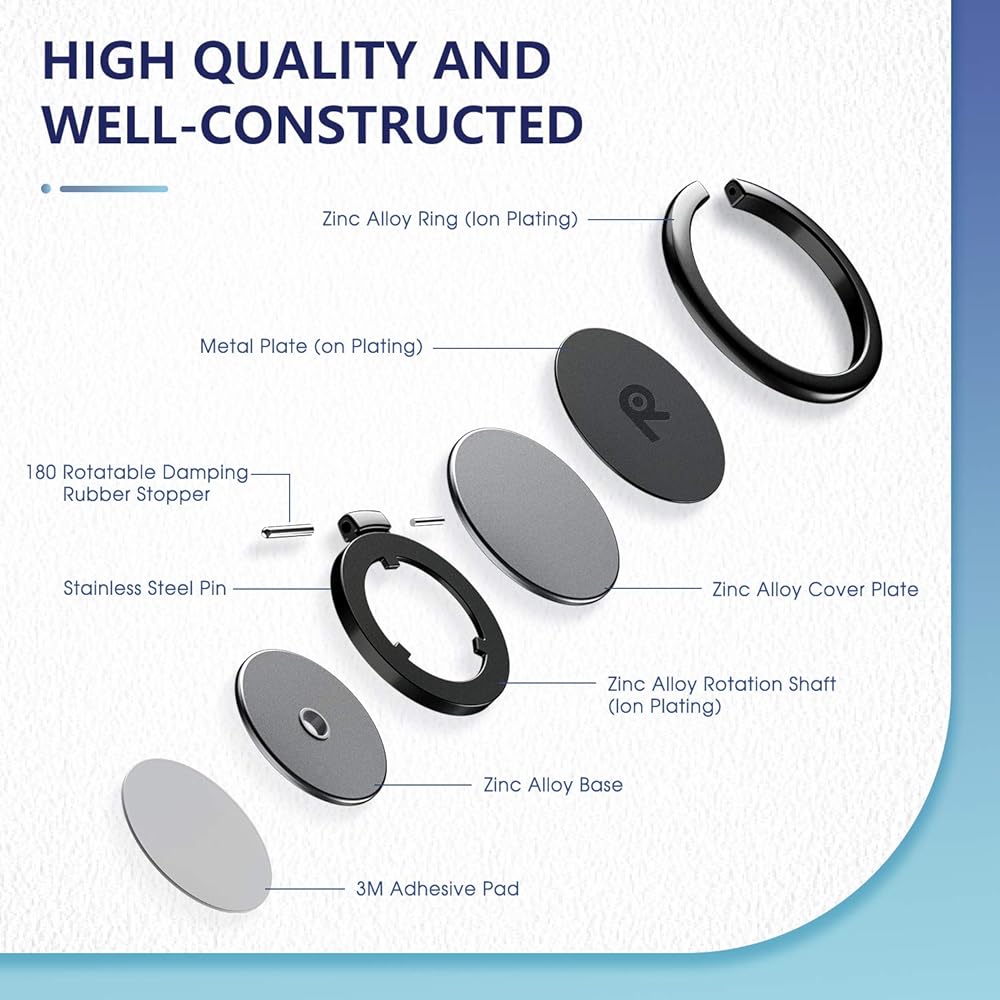 【خامة عالية الجودة】 المسند الدائري للإصبع مصنوع من سبائك الزنك عالية الجودة والفولاذ المقاوم للصدأ. تتميز سبائك الزنك بمرونة جيدة وتتميز بالصلابة، مما يساهم في إطالة العمر الافتراضي. حامل حلقي مصقول، حافة ناعمة، لا داعي للقلق من خدوش أصابعك.