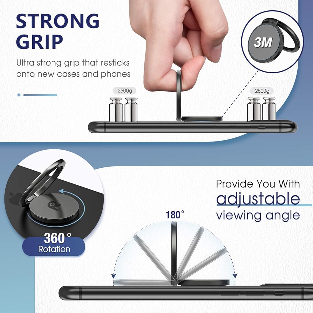 【دوران 360 درجة وقابل للتعديل 180 درجة】 يتميز حامل حلقة الهاتف بإحكام ممتاز، لذلك يمكنك ضبطه وإدارته. يمكن قفله بسهولة في وضع واحد. حامل حلقة إصبع مثالي في الوضع الأفقي أو العمودي لقراءة/مشاهدة مقاطع الفيديو.