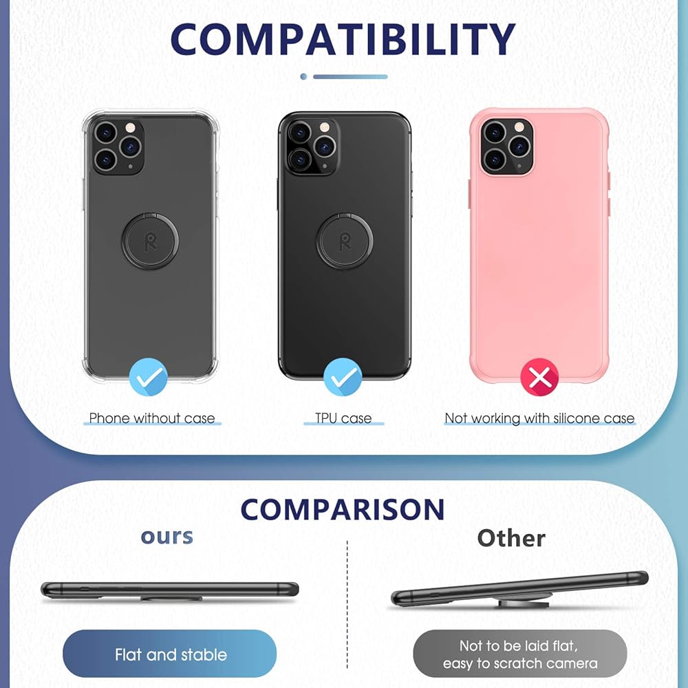 【متعددة الوظائف】 يمكن استخدامها كمقبض للهاتف، ومسند للطاولة. علاوة على ذلك، فهو يعمل أيضًا بشكل جيد مع حامل السيارة المغناطيسي أثناء القيادة. مع وجود إصبع واحد مشغول، أمسك هاتفك بيد واحدة مما يقلل بشكل كبير من خطر السقوط عن طريق الخطأ.