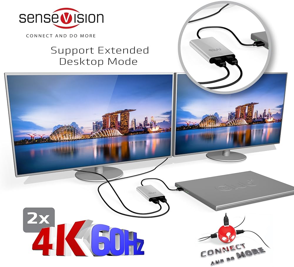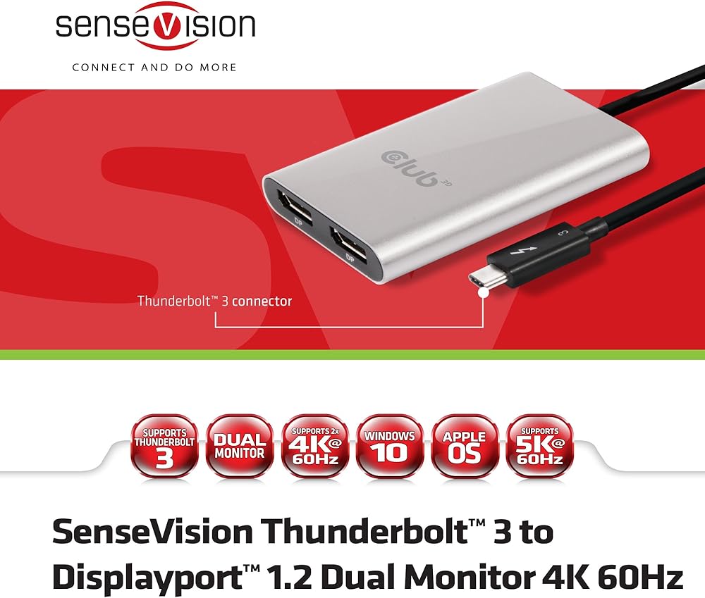 تتيح الشاشة المزدوجة سينسفيجن ثاندربولت 3 إلى ديسبلاي بورت 1.2 بدقة 4 كيه 60 هرتز للمستخدمين توصيل شاشتي ديسبلاي بورت 1.2 بأي جهاز مع واجهة ثاندربولت 3