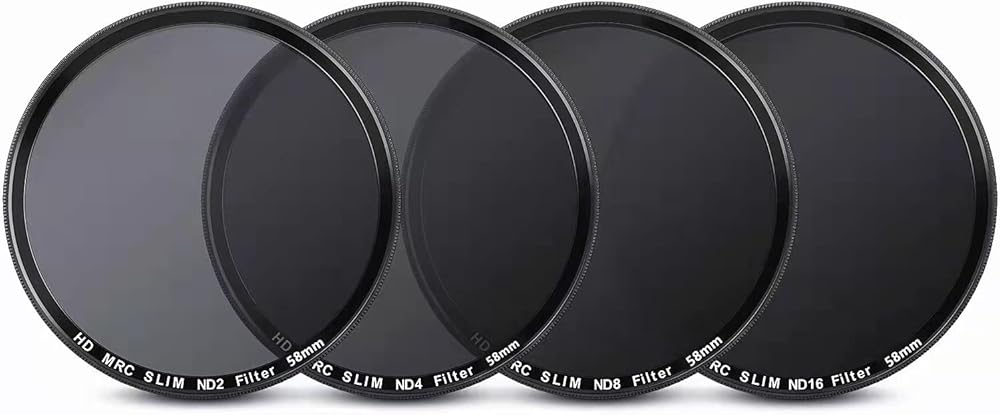 فلتر عدسة كثافة محايدة ND2 ND4 ND8 ND16 مقاس 58 ملم، فلتر ان دي مطلي مقاوم للماء ورفيع للغاية (58 ملم)